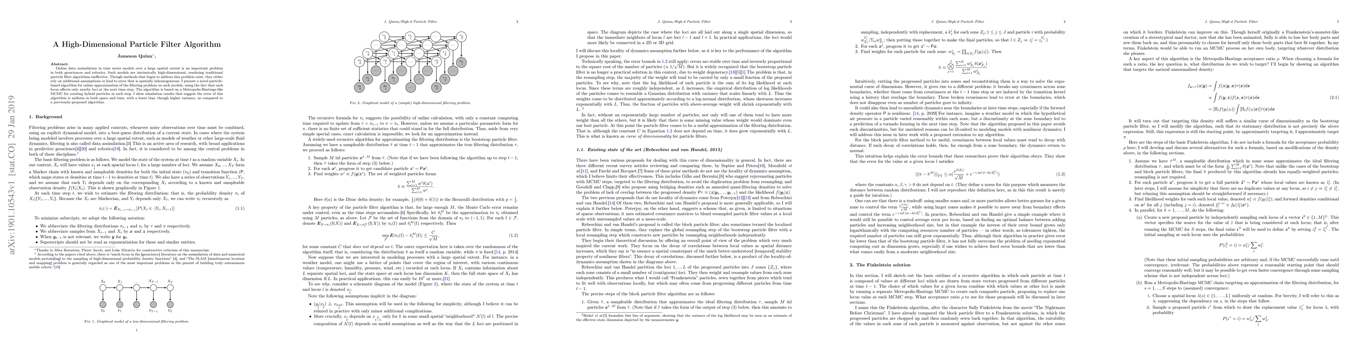 Online data assimilation in time series models over a large spatial extent is an important problem in both geosciences and robotics. Such models are intrinsically high-dimensional, rendering traditional particle filter algorithms ineffective. Though methods that begin to address this problem exist, they either rely on additional assumptions or lead to error that is spatially inhomogeneous. I present a novel particle-based algorithm for online approximation of the filtering problem on such models, using the fact that each locus affects only nearby loci at the next time step. The algorithm is based on a Metropolis-Hastings-like MCMC for creating hybrid particles at each step. I show simulation results that suggest the error of this algorithm is uniform in both space and time, with a lower bias, though higher variance, as compared to a previously-proposed algorithm.
