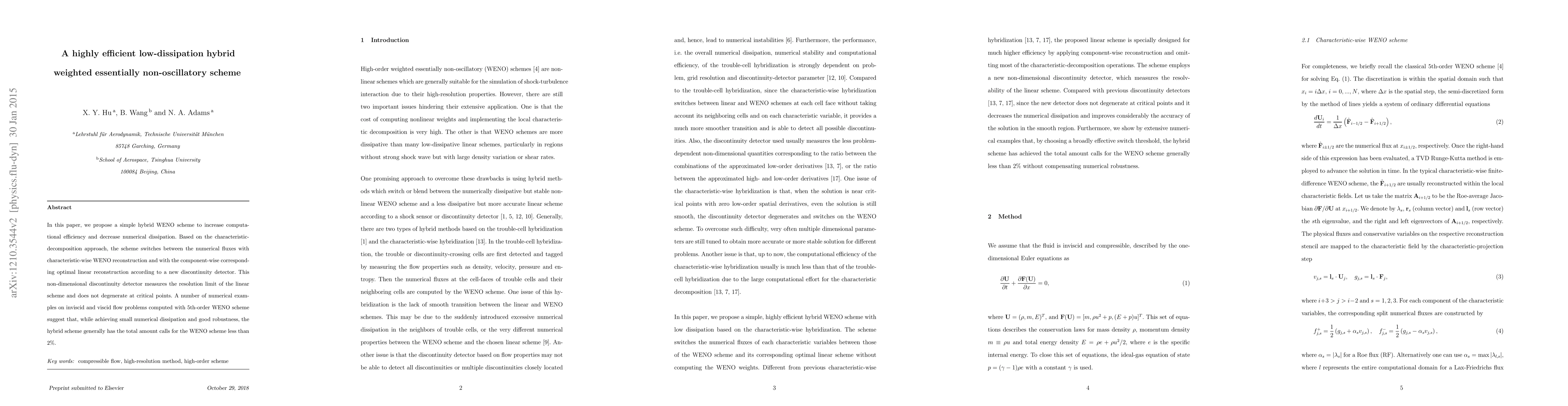 In this paper, we propose a simple hybrid WENO scheme to increase computational efficiency and decrease numerical dissipation. Based on the characteristic-wise approach, the scheme switches the numerical flux of each characteristic variables between that of WENO scheme and its optimal linear scheme according to a discontinuity detector measuring the non-resolvability of the linear scheme. A number of numerical examples computed with 5th-order WENO scheme suggested that, while achieving very small numerical dissipation and good robustness, the computational effort on WENO flux used in the hybrid scheme is negligible.