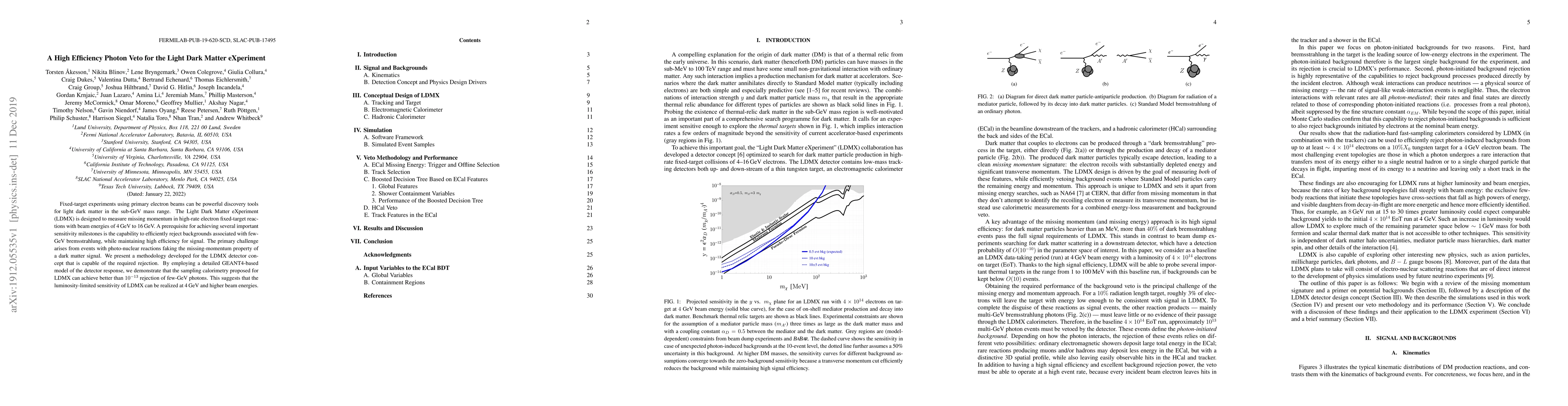 The Light Dark Matter eXperiment (LDMX) paper outlines a method to efficiently reject backgrounds in sub-GeV dark matter searches using electron beams. By utilizing a detailed GEANT4-based detector model, the research demonstrates that sampling calorimetry can achieve better than $10^{-13}$ rejection of few-GeV photons, enabling LDMX to reach its sensitivity goals at 4 GeV and higher beam energies.