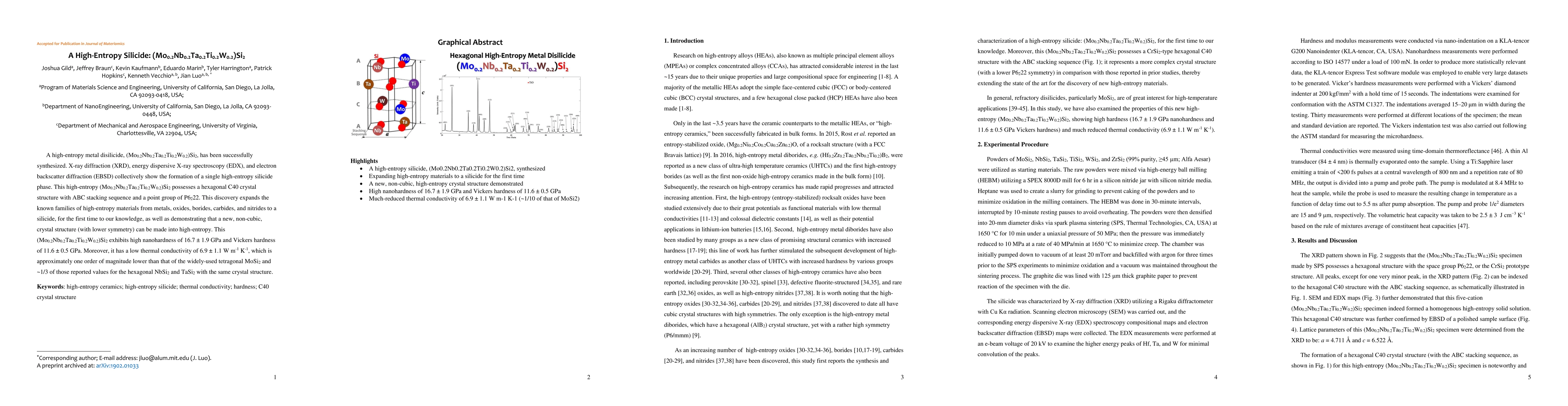 Researchers have successfully synthesized a high-entropy silicide with unique properties, including high nanohardness and low thermal conductivity, expanding the family of high-entropy materials.