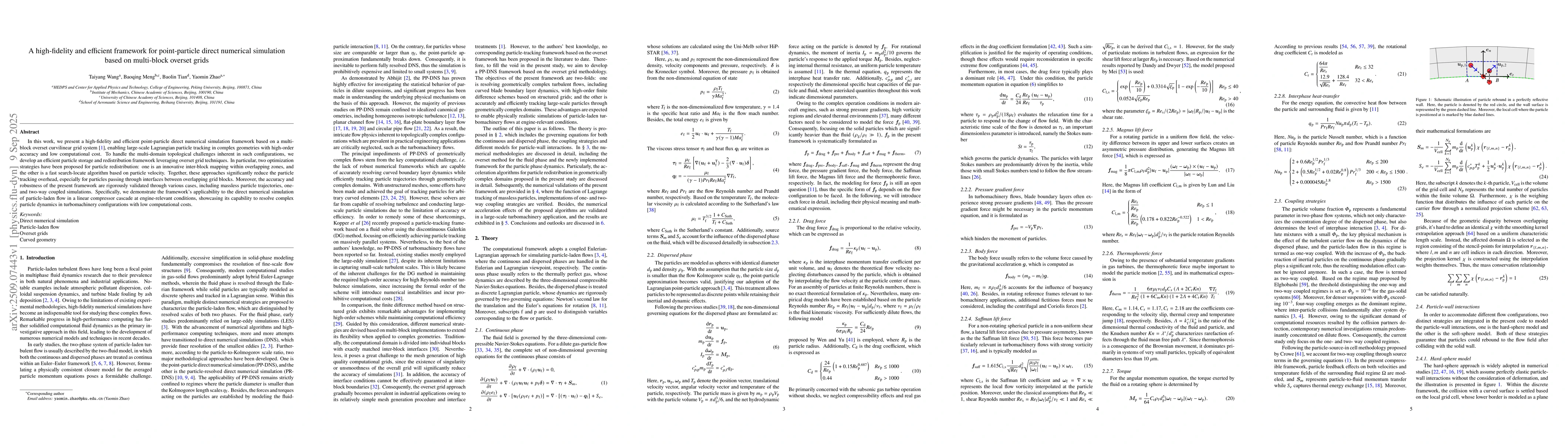 In this work, we present a high-fidelity and efficient point-particle direct numerical simulation framework based on a multi-block overset curvilinear grid system, enabling large-scale Lagrangian particle tracking in complex geometries with high-order accuracy and low computational cost. To handle the multi-domain topological challenges inherent in such configurations, we develop an efficient particle storage and redistribution framework leveraging overset grid techniques. In particular, two optimization strategies have been proposed for particle redistribution: one is an innovative inter-block mapping within overlapping zones, and the other is a fast search-locate algorithm based on particle velocity. Together, these approaches significantly reduce the particle tracking overhead, especially for particles passing through interfaces between overlapping grid blocks. Moreover, the accuracy and robustness of the present framework are rigorously validated through various cases, including massless particle trajectories, one- and two-way coupled simulations. Specifically, we demonstrate the framework's applicability to the direct numerical simulation of particle-laden flow in a linear compressor cascade at engine-relevant conditions, showcasing its capability to resolve complex particle dynamics in turbomachinery configurations with low computational costs.