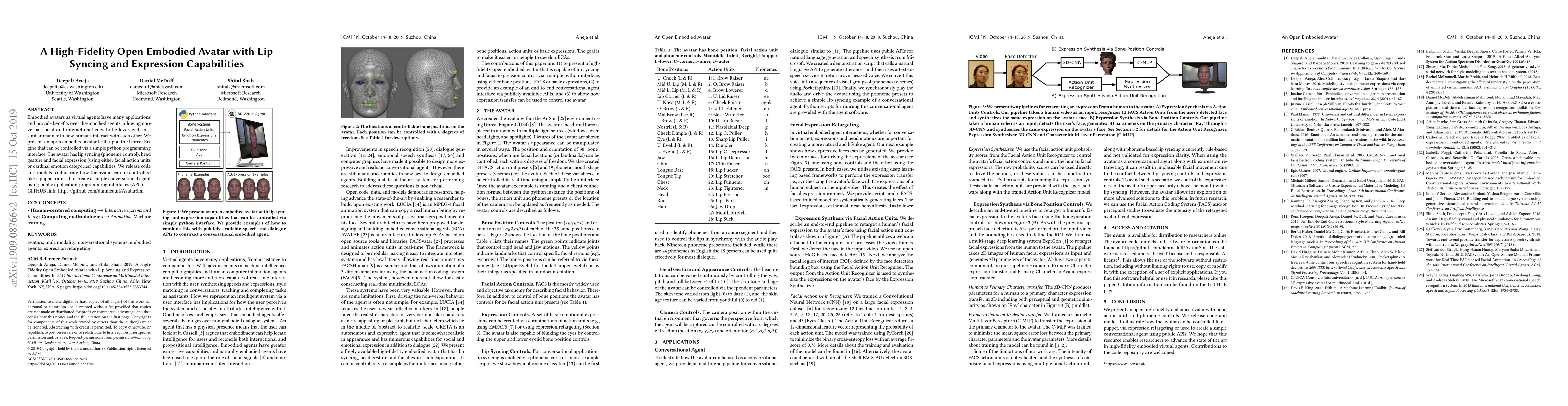 This paper introduces a high-fidelity open embodied avatar built on Unreal Engine, controllable via Python, featuring lip syncing, head gestures, and facial expressions. The authors release code and models to demonstrate its use in creating conversational agents and puppet-like interactions.