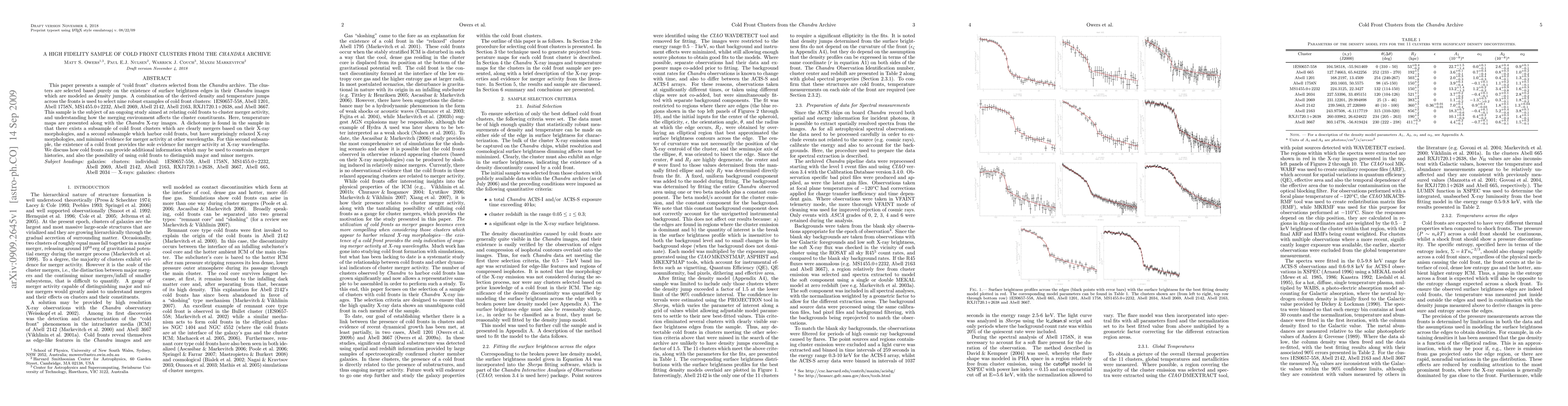 This paper identifies a high-fidelity sample of cold front clusters from the Chandra archive, selected based on surface brightness edges indicating density jumps. The study reveals two subsamples: one with clear merger evidence and another with cold fronts but minimal merger activity, suggesting cold fronts may indicate merger history and distinguish between major and minor mergers.