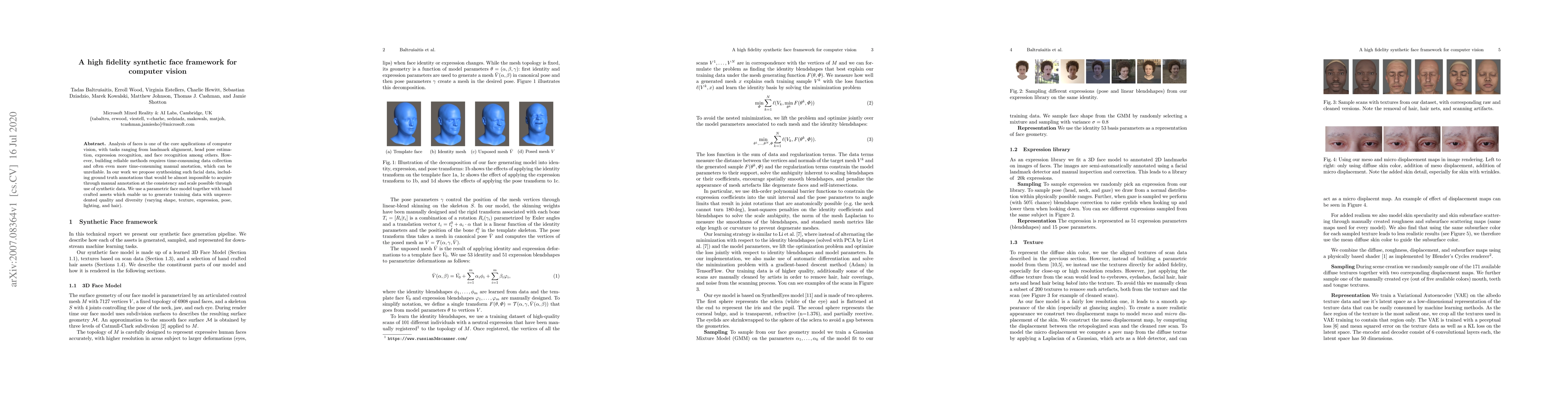 Researchers propose a high-fidelity synthetic face framework to generate training data for computer vision tasks with unprecedented quality and diversity. This approach aims to overcome the challenges of manual annotation and data collection.