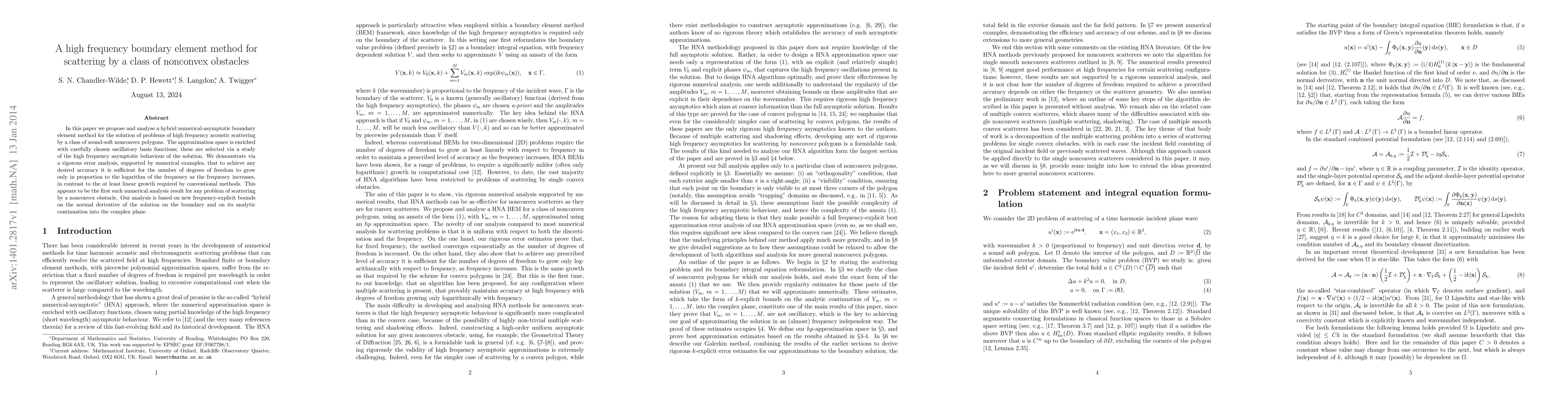 In this paper we propose and analyse a hybrid numerical-asymptotic boundary element method for the solution of problems of high frequency acoustic scattering by a class of sound-soft nonconvex polygons. The approximation space is enriched with carefully chosen oscillatory basis functions; these are selected via a study of the high frequency asymptotic behaviour of the solution. We demonstrate via a rigorous error analysis, supported by numerical examples, that to achieve any desired accuracy it is sufficient for the number of degrees of freedom to grow only in proportion to the logarithm of the frequency as the frequency increases, in contrast to the at least linear growth required by conventional methods. This appears to be the first such numerical analysis result for any problem of scattering by a nonconvex obstacle. Our analysis is based on new frequency-explicit bounds on the normal derivative of the solution on the boundary and on its analytic continuation into the complex plane.