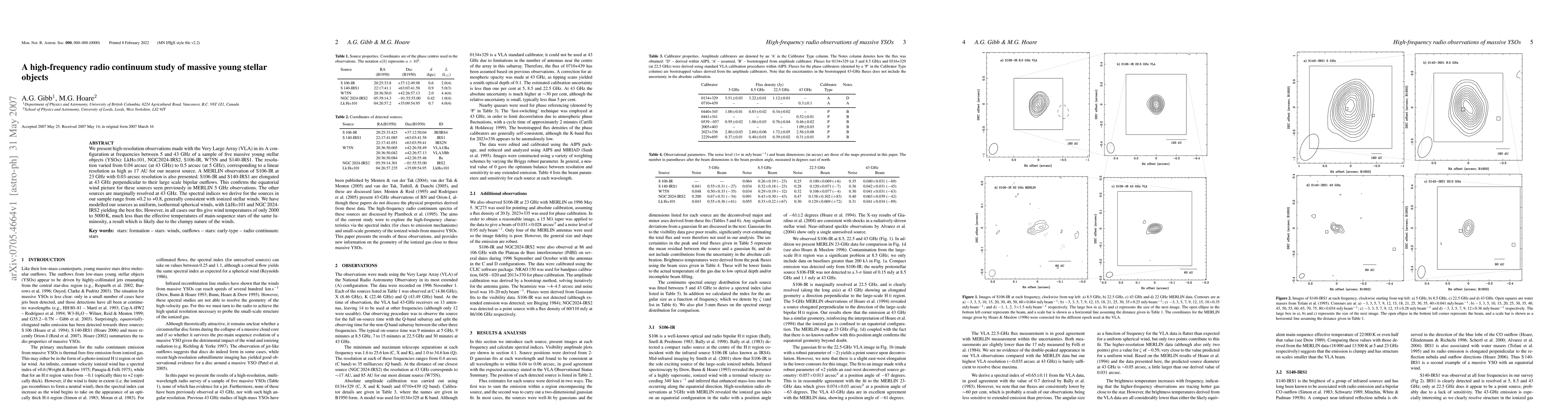 We present high-resolution observations made with the Very Large Array (VLA) in its A configuration at frequencies between 5 and 43 GHz of a sample of five massive young stellar objects (YSOs): LkHa101, NGC2024-IRS2, S106-IR, W75N and S140-IRS1. The resolution varied from 0.04 arcsec (at 43 GHz) to 0.5 arcsec (at 5 GHz), corresponding to a linear resolution as high as 17 AU for our nearest source. A MERLIN observation of S106-IR at 23 GHz with 0.03-arcsec resolution is also presented. S106-IR and S140-IRS1 are elongated at 43 GHz perpendicular to their large scale bipolar outflows. This confirms the equatorial wind picture for these sources seen previously in MERLIN 5 GHz observations. The other sources are marginally resolved at 43 GHz. The spectral indices we derive for the sources in our sample range from +0.2 to +0.8, generally consistent with ionized stellar winds. We have modelled our sources as uniform, isothermal spherical winds, with LkHa101 and NGC2024-IRS2 yielding the best fits. However, in all cases our fits give wind temperatures of only 2000 to 5000 K, much less than the effective temperatures of main-sequence stars of the same luminosity, a result which is likely due to the clumpy nature of the winds.