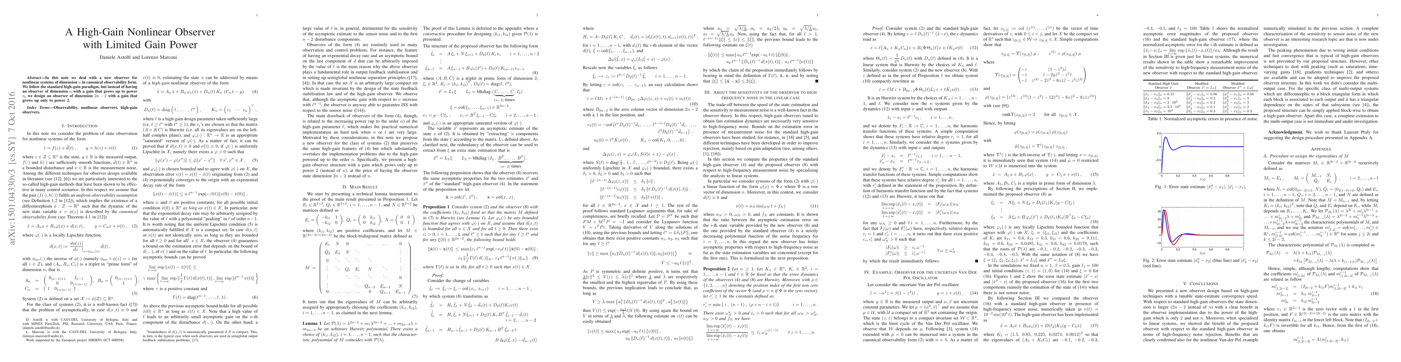The research proposes a new high-gain nonlinear observer for systems in canonical observability form, reducing the gain power from order n to power 2 compared to standard high-gain observers.