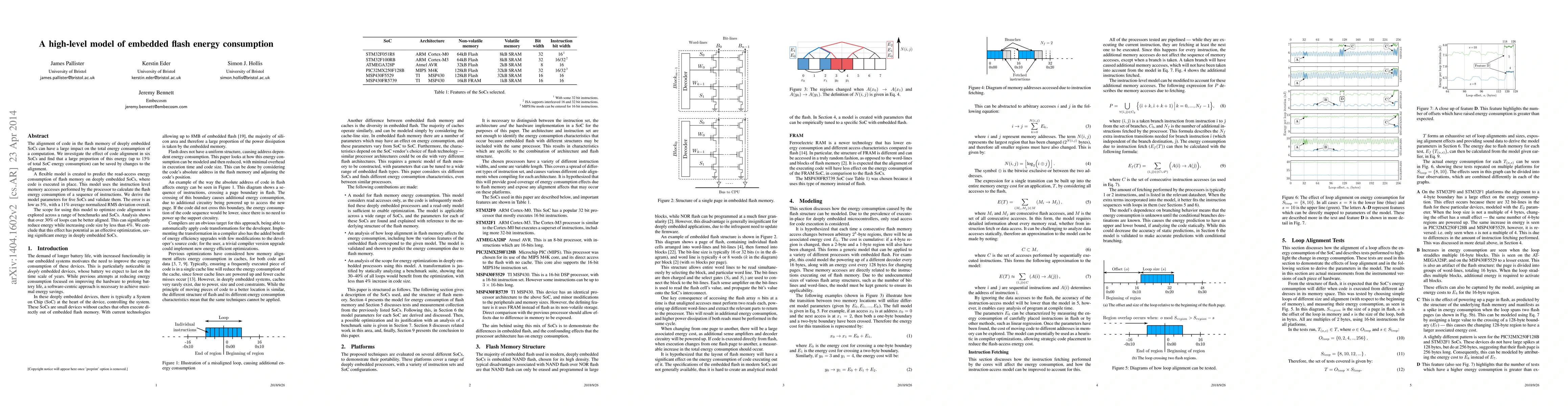 The alignment of code in the flash memory of deeply embedded SoCs can have a large impact on the total energy consumption of a computation. We investigate the effect of code alignment in six SoCs and find that a large proportion of this energy (up to 15% of total SoC energy consumption) can be saved by changes to the alignment. A flexible model is created to predict the read-access energy consumption of flash memory on deeply embedded SoCs, where code is executed in place. This model uses the instruction level memory accesses performed by the processor to calculate the flash energy consumption of a sequence of instructions. We derive the model parameters for five SoCs and validate them. The error is as low as 5%, with a 11% average normalized RMS deviation overall. The scope for using this model to optimize code alignment is explored across a range of benchmarks and SoCs. Analysis shows that over 30% of loops can be better aligned. This can significantly reduce energy while increasing code size by less than 4%. We conclude that this effect has potential as an effective optimization, saving significant energy in deeply embedded SoCs.