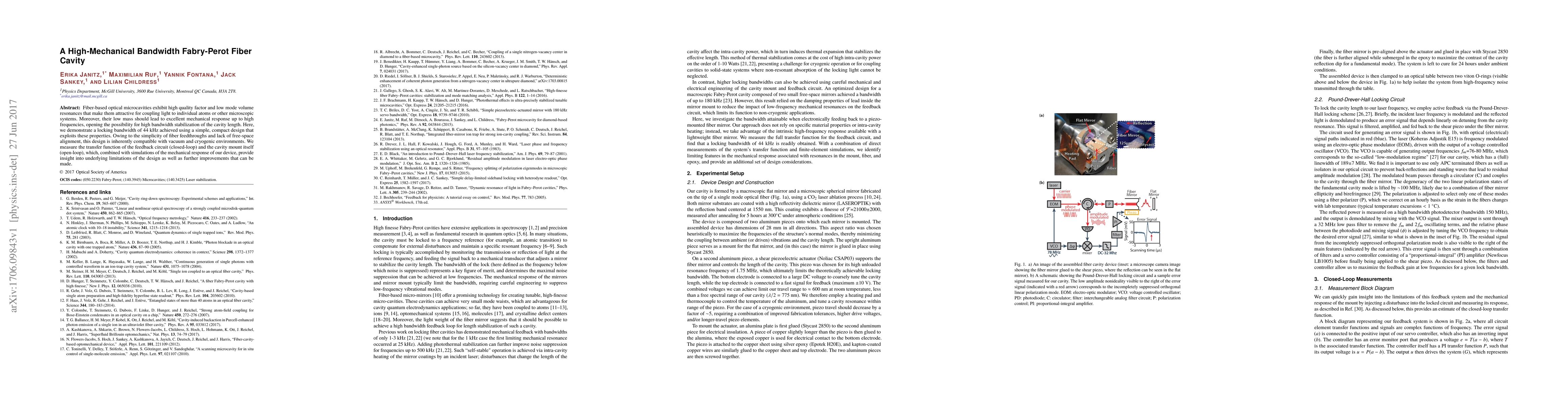 Researchers demonstrate a high-mechanical bandwidth Fabry-Perot fiber cavity with a locking bandwidth of 44 kHz, showcasing potential for high-frequency stabilization in optical microcavities.