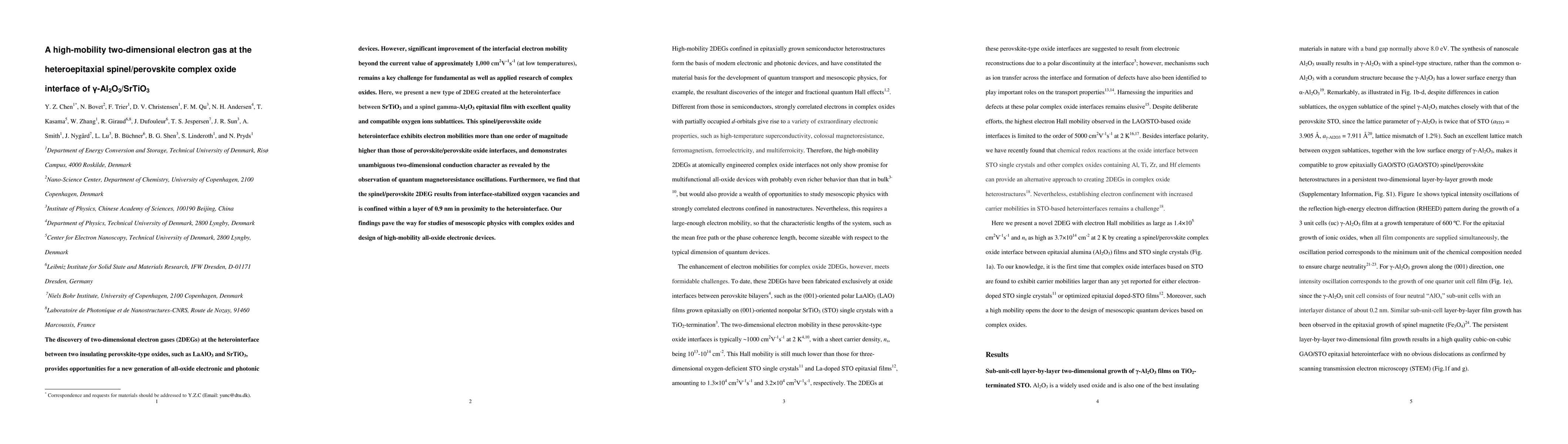 This research introduces a high-mobility two-dimensional electron gas (2DEG) at the heteroepitaxial interface between spinel γ-Al₂O₃ and perovskite SrTiO₃, achieving electron mobilities over an order of magnitude higher than traditional perovskite/perovskite interfaces. The study reveals the 2DEG's two-dimensional conduction and potential for advanced all-oxide electronic devices.