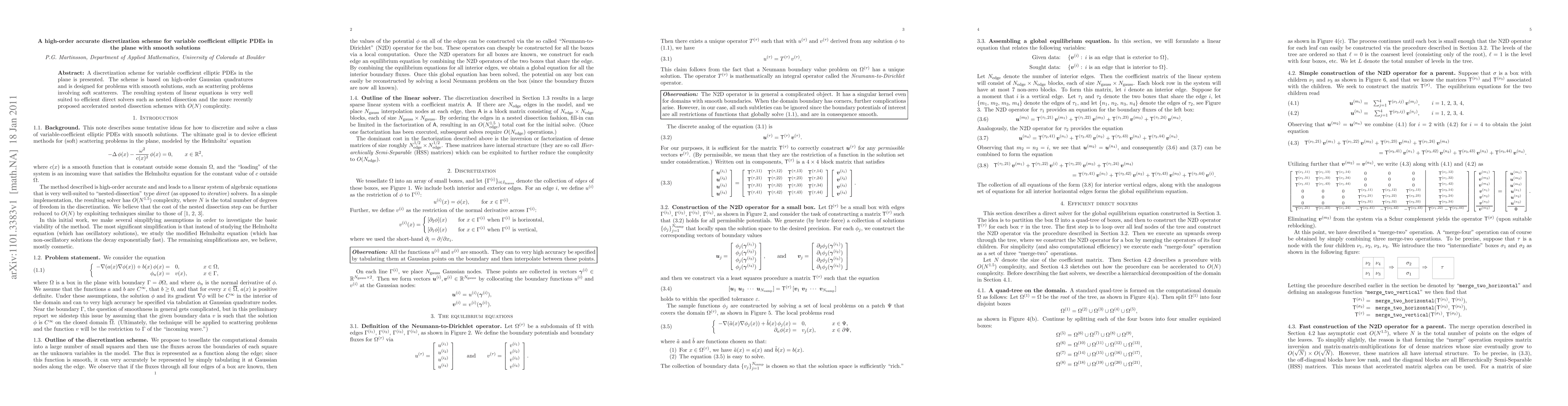This paper introduces a high-order accurate discretization scheme for variable coefficient elliptic PDEs using high-order Gaussian quadratures, tailored for smooth solutions like scattering problems involving soft scatterers, and efficiently solved using O(N) complexity solvers like nested dissection.