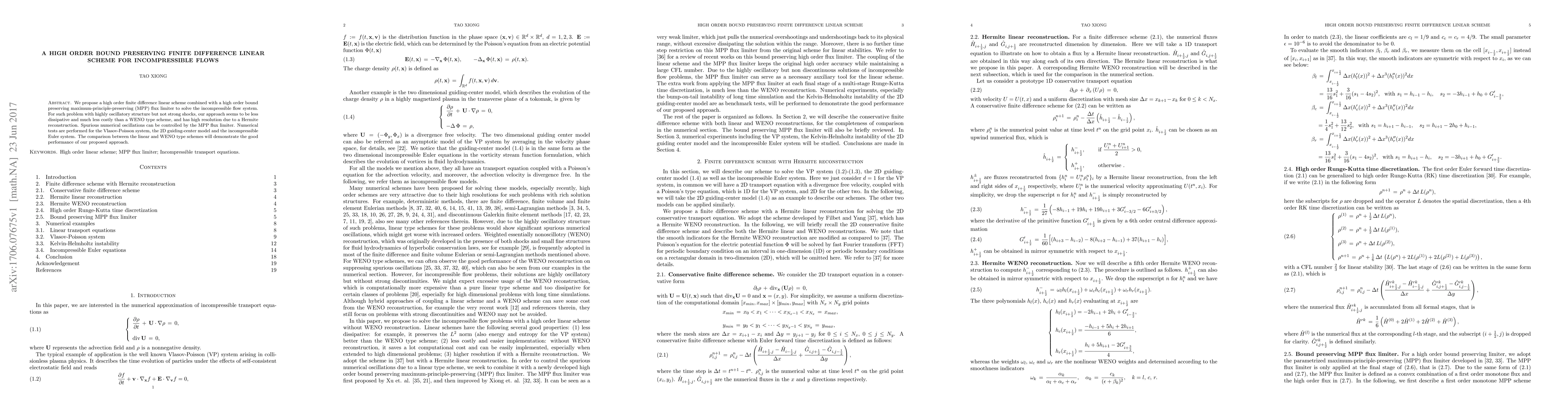 This paper proposes a high-order finite difference linear scheme with a bound-preserving flux limiter for solving incompressible flow systems, offering less dissipation and lower computational cost compared to WENO schemes. Numerical tests on Vlasov-Poisson, guiding-center, and Euler systems demonstrate the approach's effectiveness and high resolution.
