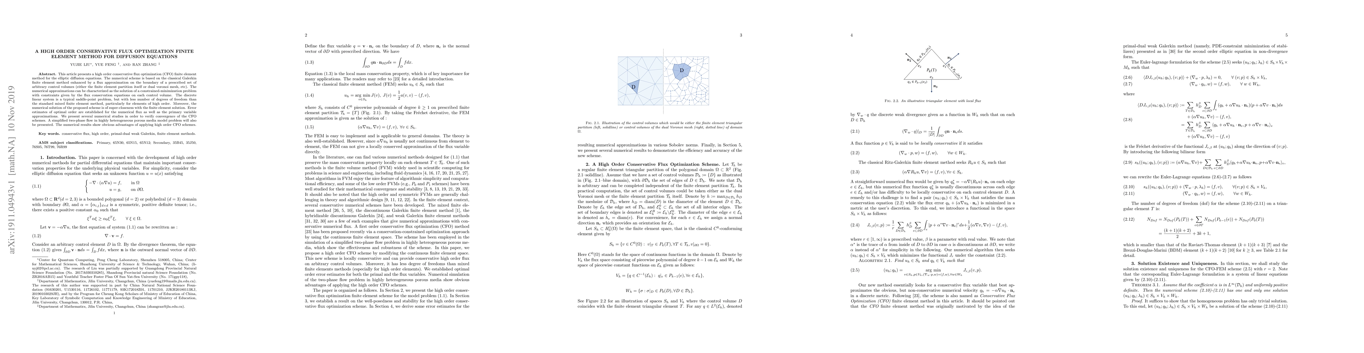 This paper introduces a high order conservative flux optimization finite element method for solving elliptic diffusion equations, demonstrating enhanced accuracy and reduced degrees of freedom compared to standard methods. Numerical results confirm the method's convergence and efficiency, particularly in complex two-phase flow scenarios.