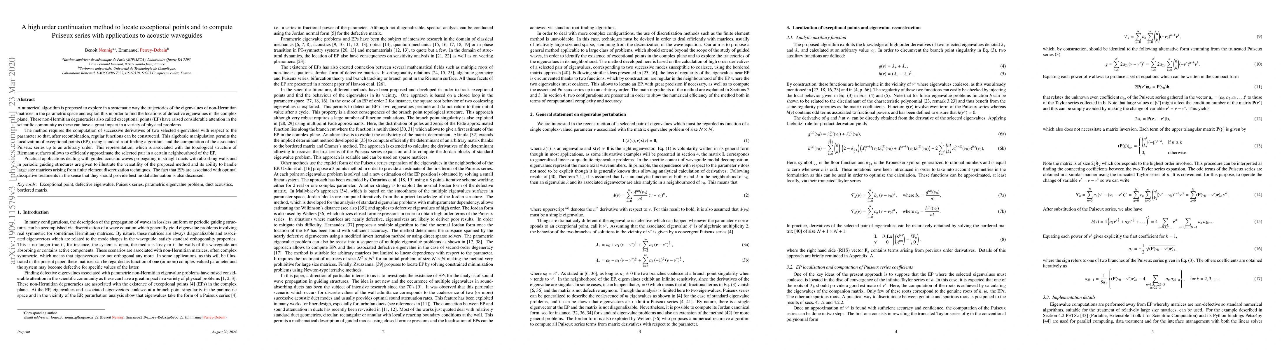 The paper introduces a new numerical method to identify and analyze special points called exceptional points in non-Hermitian systems, which are important in physical applications like acoustic waveguides. This approach accurately locates these points and calculates related series expansions, aiding the design of systems with optimal wave attenuation.