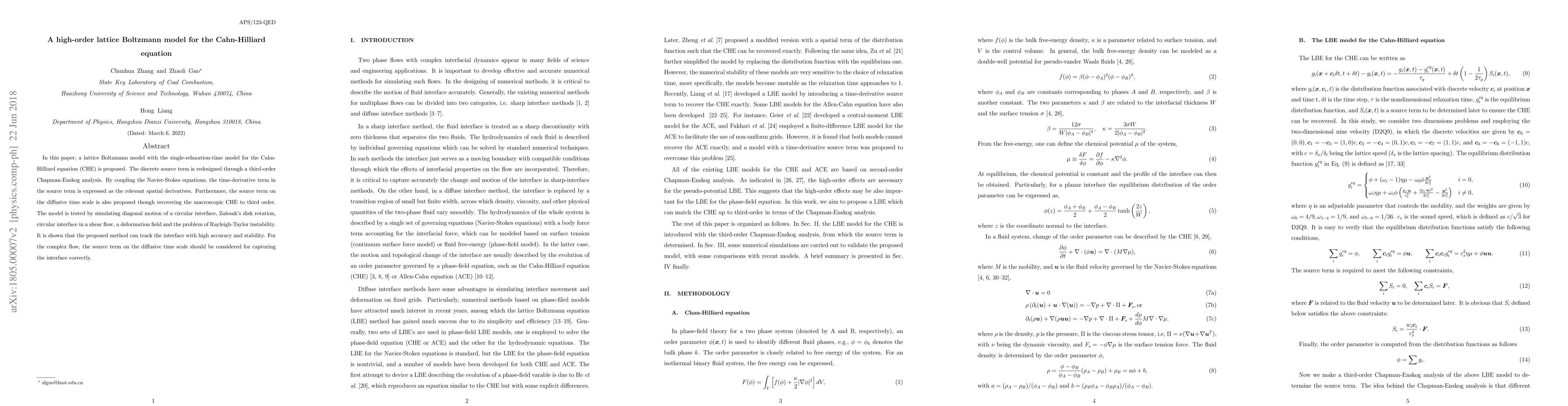 This paper proposes a high-order lattice Boltzmann model for the Cahn-Hilliard equation, utilizing a third-order Chapman-Enskog analysis to redesign the discrete source term. The model demonstrates high accuracy and stability in tracking interfaces during various simulations, emphasizing the importance of the source term on the diffusive time scale for complex flows.