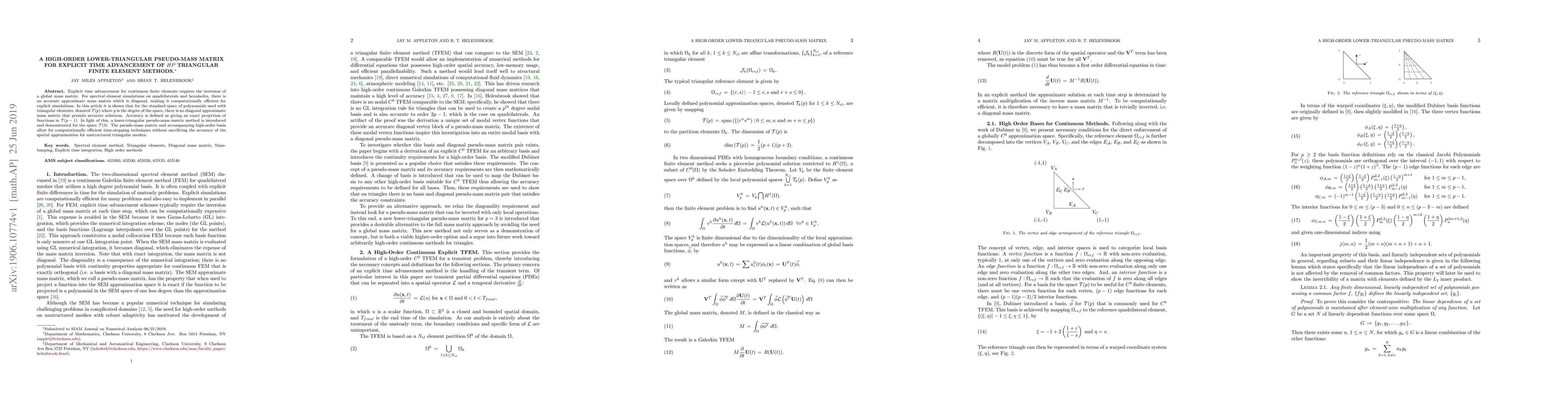 This research introduces a lower-triangular pseudo-mass matrix for explicit time advancement in hp triangular finite element methods, as no diagonal approximate mass matrix accurately projects functions in lower-degree spaces for triangular elements. The method ensures computational efficiency without compromising spatial accuracy for unstructured meshes.