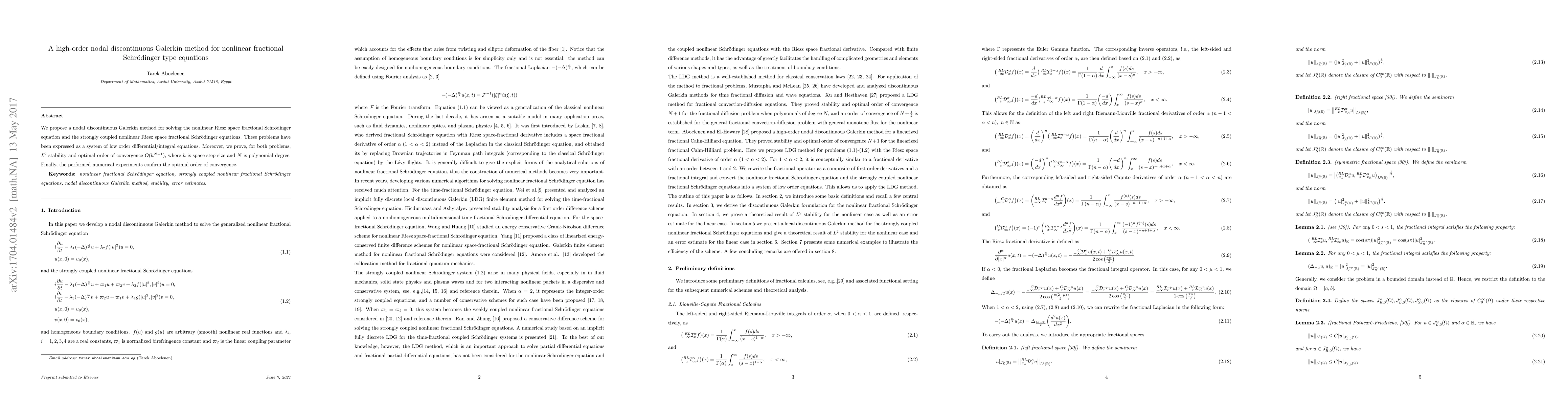 We propose a nodal discontinuous Galerkin method for solving the nonlinear Riesz space fractional Schr\"{o}dinger equation and the strongly coupled nonlinear Riesz space fractional Schr\"{o}dinger equations. These problems have been expressed as a system of low order differential/integral equations. Moreover, we prove, for both problems, $L^{2}$ stability and optimal order of convergence $O(h^{N+1})$, where $h$ is space step size and $N$ is polynomial degree. Finally, the performed numerical experiments confirm the optimal order of convergence.