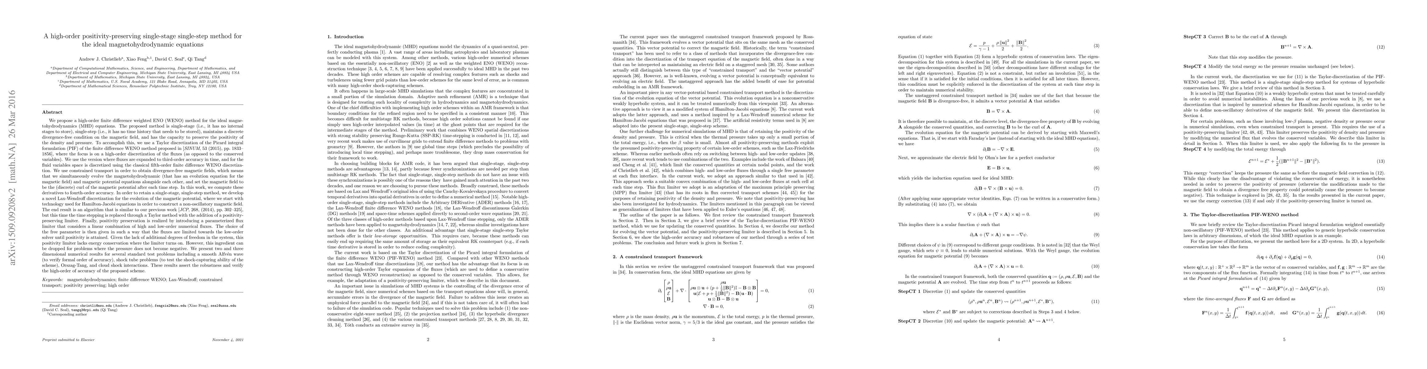 This paper proposes a high-order finite difference WENO method for ideal magnetohydrodynamics, maintaining a discrete divergence-free condition on the magnetic field and preserving the positivity of density and pressure. The method uses a Taylor discretization of the Picard integral formulation and a novel Lax-Wendroff scheme for magnetic potential evolution, validated by high-order accuracy and robustness in numerical tests.