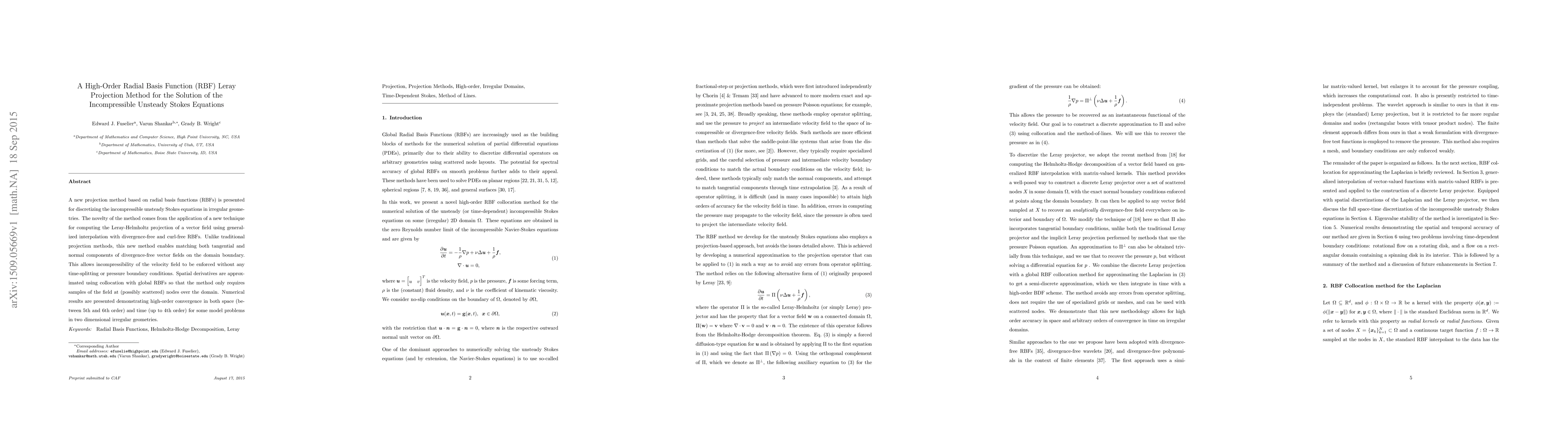 A new method for solving incompressible unsteady Stokes equations uses radial basis functions to enforce velocity field incompressibility without time-splitting or pressure boundary conditions, achieving high-order convergence in both space and time.