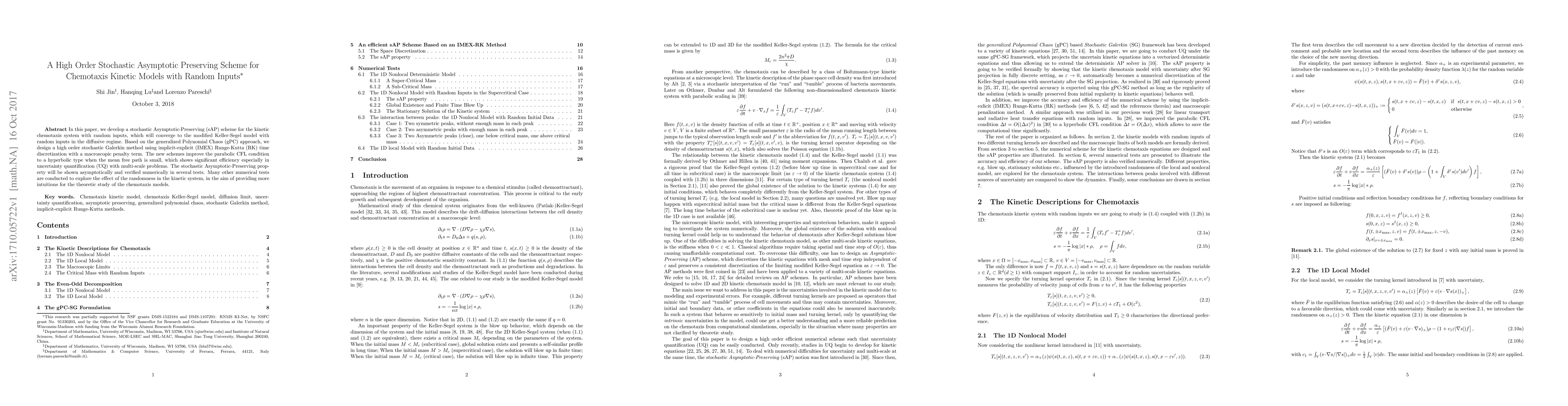 This paper introduces a high-order stochastic Asymptotic-Preserving scheme for kinetic chemotaxis models with random inputs, which converges to the modified Keller-Segel model in the diffusive regime. The scheme employs a generalized Polynomial Chaos approach and an implicit-explicit Runge-Kutta method, improving the CFL condition and enhancing efficiency in uncertainty quantification for multi-scale problems.