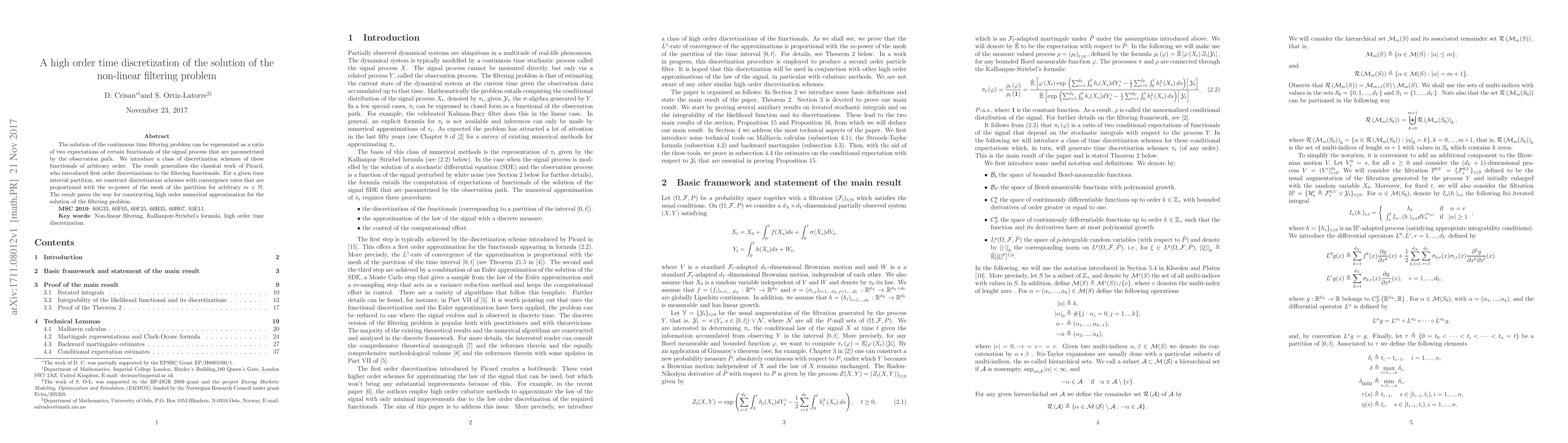 This paper introduces high-order discretization schemes for solving the non-linear filtering problem, generalizing the first-order methods of Picard. The proposed schemes achieve convergence rates proportional to the $m$-power of the partition mesh for any natural number $m$, enabling high-order numerical approximations.