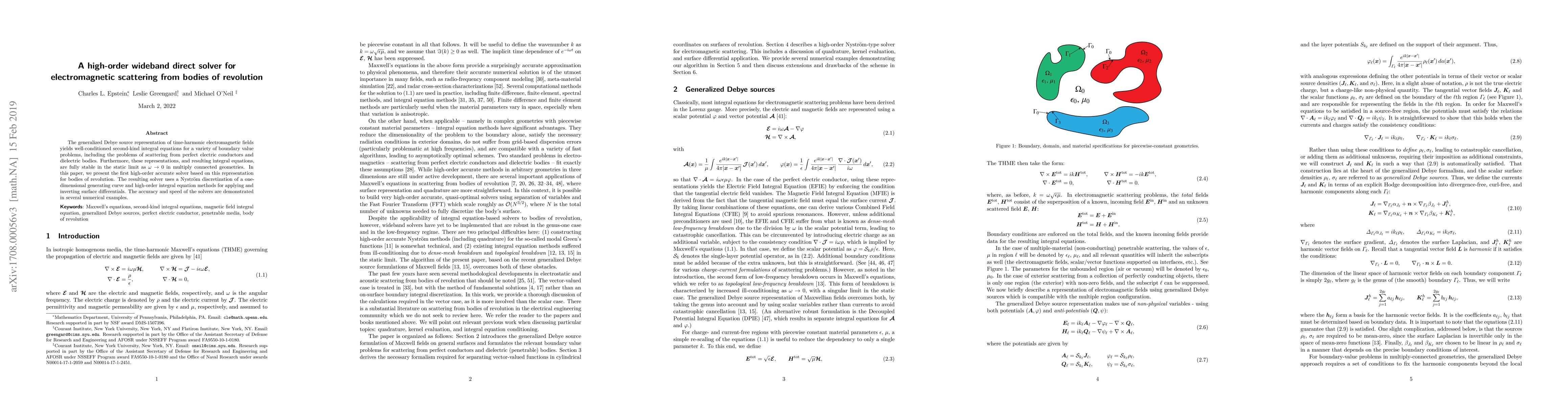 A high-order solver for electromagnetic scattering from bodies of revolution is presented, offering improved accuracy and speed over existing methods.