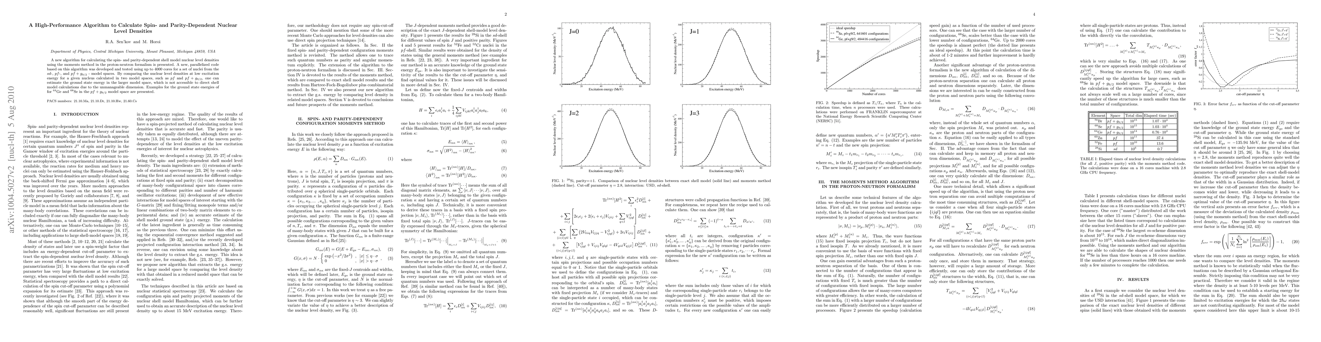 This paper introduces a high-performance algorithm for calculating spin- and parity-dependent nuclear level densities using the moments method in proton-neutron formalism. The developed parallelized code, tested on up to 4000 cores, enables estimation of ground state energies in larger model spaces by comparing densities in different model spaces.