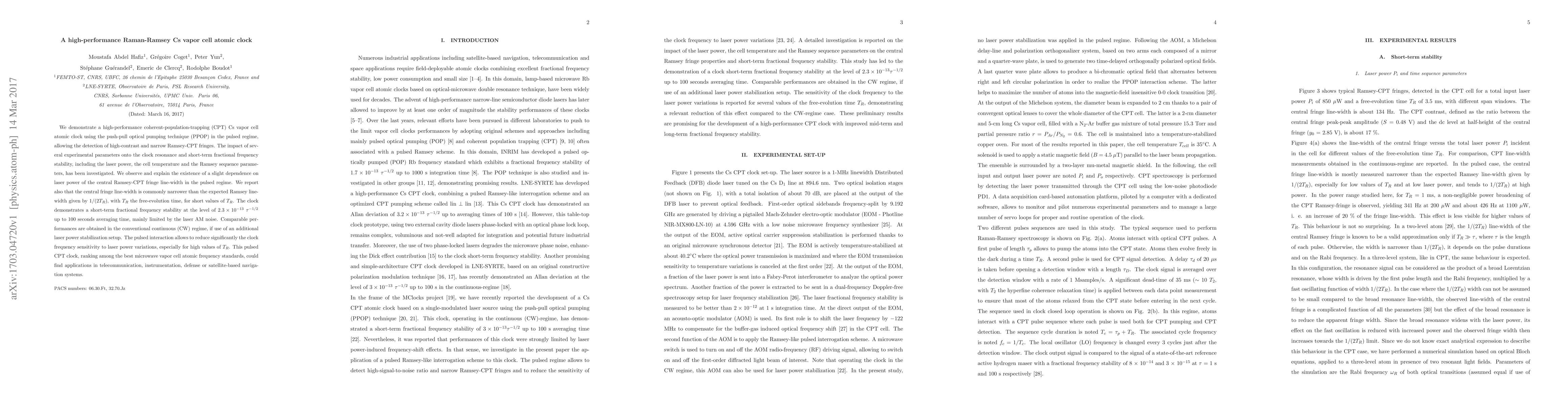 This paper details a high-performance Cs vapor cell atomic clock using a push-pull optical pumping technique, achieving high-contrast Ramsey-CPT fringes and demonstrating short-term fractional frequency stability of $2.3 \times 10^{-13}~\tau^{-1/2}$. The clock shows reduced sensitivity to laser power variations in the pulsed regime and comparable performance in continuous wave operation with additional stabilization.