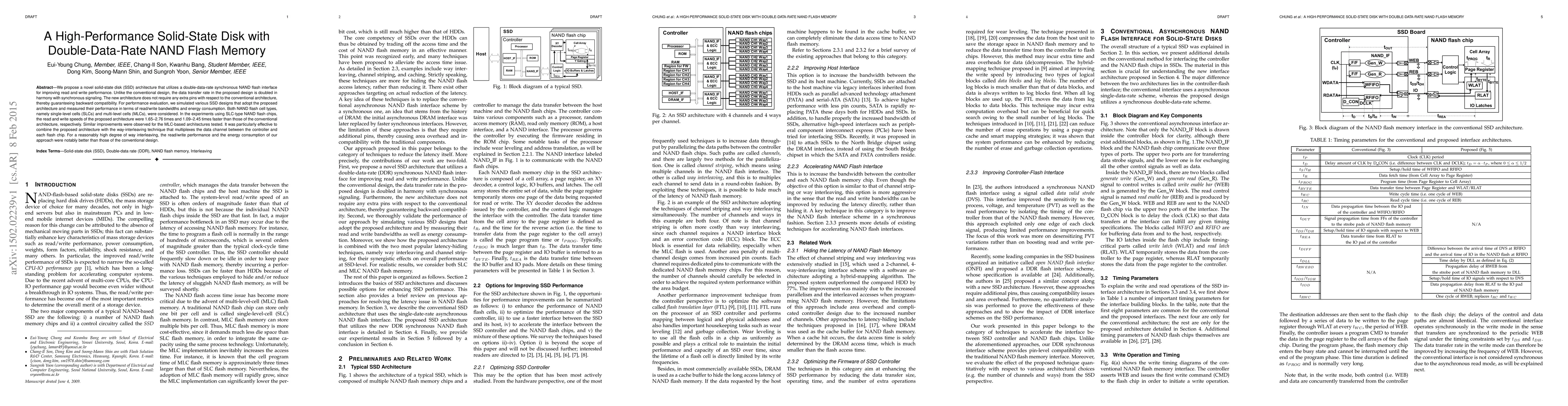 Researchers developed a high-performance solid-state disk with double-data-rate NAND flash memory, achieving 1.65-2.76x faster read and write speeds than conventional designs, while maintaining backward compatibility.