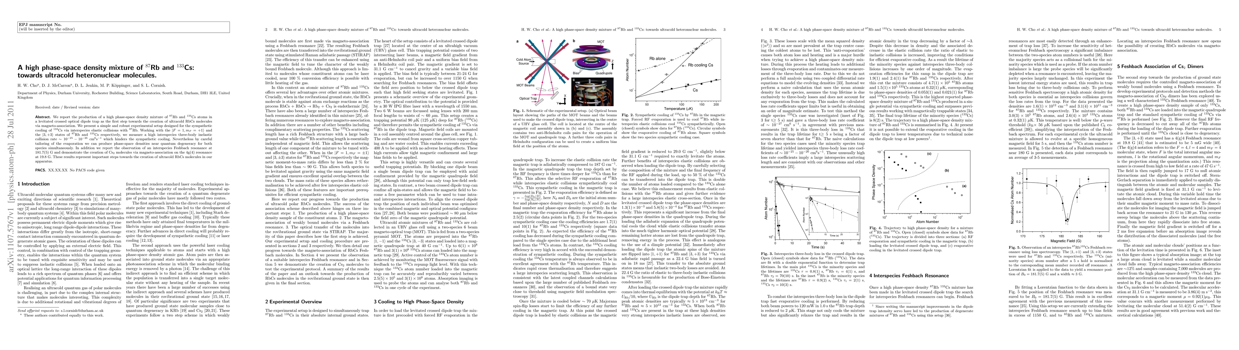 We report the production of a high phase-space density mixture of $^{87}$Rb and $^{133}$Cs atoms in a levitated crossed optical dipole trap as the first step towards the creation of ultracold RbCs molecules via magneto-association. We present a simple and robust experimental setup designed for the sympathetic cooling of $^{133}$Cs via interspecies elastic collisions with $^{87}$Rb. Working with the $|F=1, m_F=+1 >$ and the $|3, +3 >$ states of $^{87}$Rb and $^{133}$Cs respectively, we measure a high interspecies three-body inelastic collision rate $\sim 10^{-25}-10^{-26} \rm{cm}^{6}\rm{s}^{-1}$ which hinders the sympathetic cooling. Nevertheless by careful tailoring of the evaporation we can produce phase-space densities near quantum degeneracy for both species simultaneously. In addition we report the observation of an interspecies Feshbach resonance at 181.7(5) G and demonstrate the creation of Cs$_{2}$ molecules via magneto-association on the 4g(4) resonance at 19.8 G. These results represent important steps towards the creation of ultracold RbCs molecules in our apparatus.