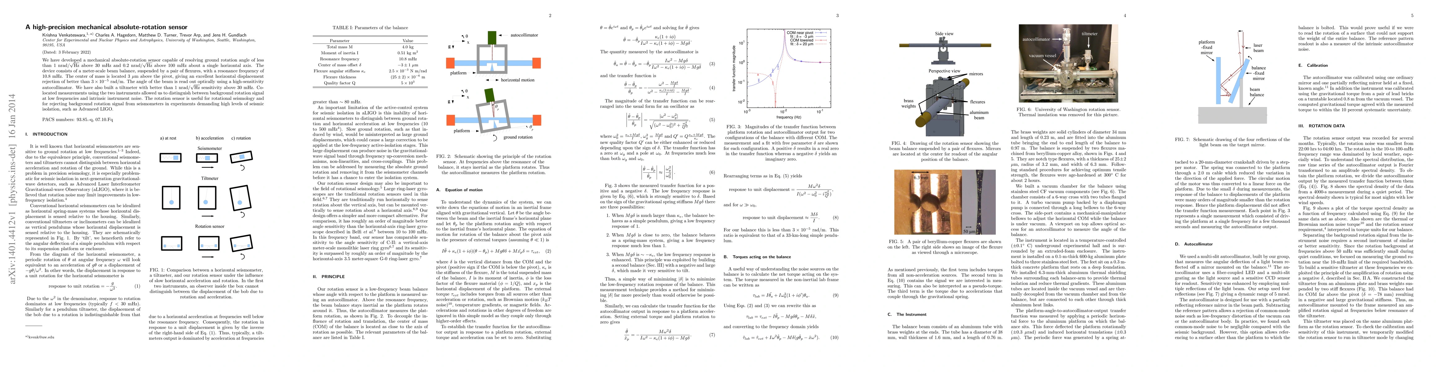 Researchers developed a high-precision mechanical absolute-rotation sensor with an angular resolution of less than 1 nrad/sqrt(Hz) above 30 mHz, useful for rotational seismology and seismic isolation experiments.