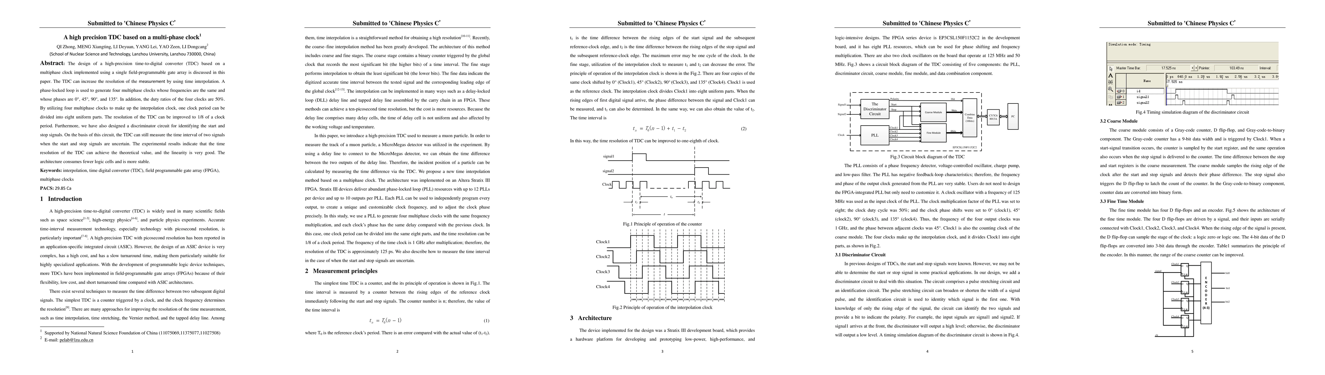 This paper presents a high-precision time-to-digital converter (TDC) utilizing a multiphase clock generated by a phase-locked loop within a single FPGA, achieving a resolution of 1/8 of a clock period through time interpolation. Experimental results confirm the TDC's theoretical resolution and excellent linearity, with an efficient and stable architecture.