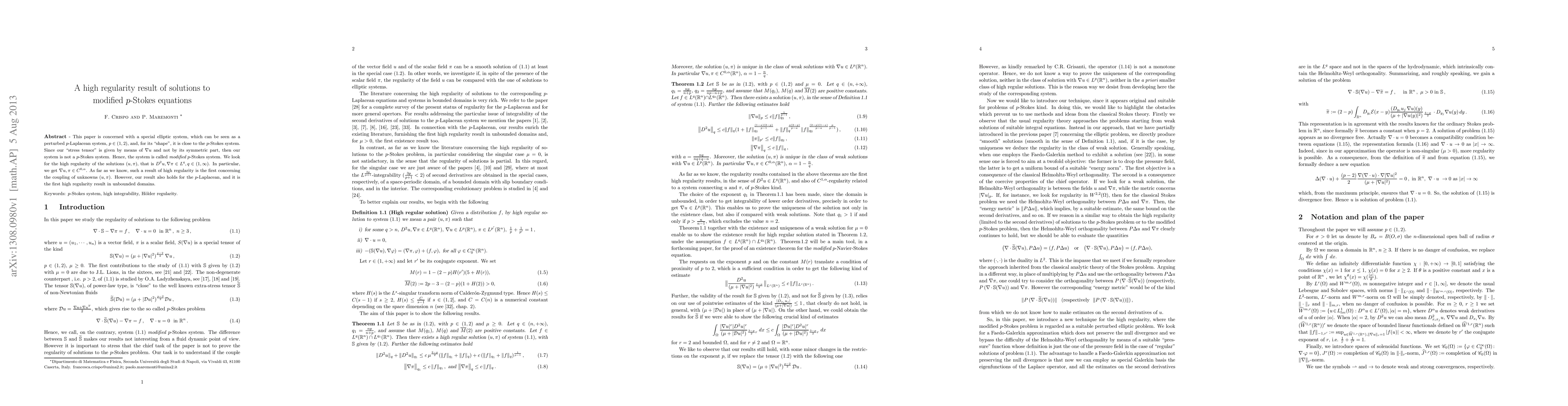 This paper investigates the high regularity of solutions to a modified $p$-Stokes system, where $p\in(1,2)$, focusing on the elliptic system's coupling of unknowns $(u,\pi)$. The authors demonstrate that $\nabla u$ and $\pi$ achieve Hölder continuity, marking a first result of such high regularity in unbounded domains.