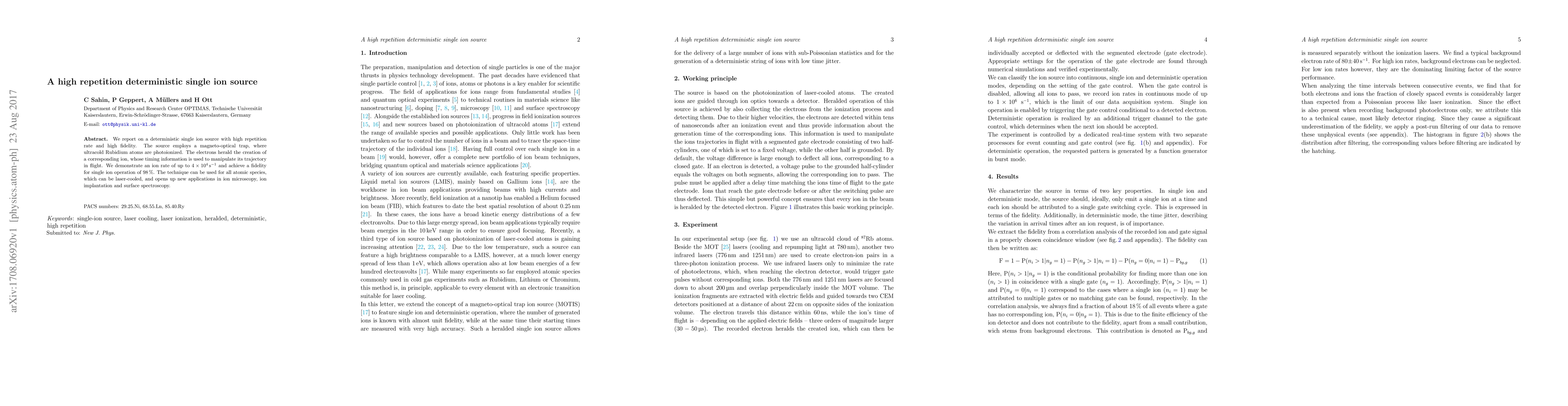 This paper presents a high repetition rate deterministic single ion source using a magneto-optical trap to photoionize ultracold Rubidium atoms, achieving up to 40 kHz ion rate and 98% fidelity. The method is applicable to any laser-cooled atomic species, promising advancements in ion microscopy and related fields.