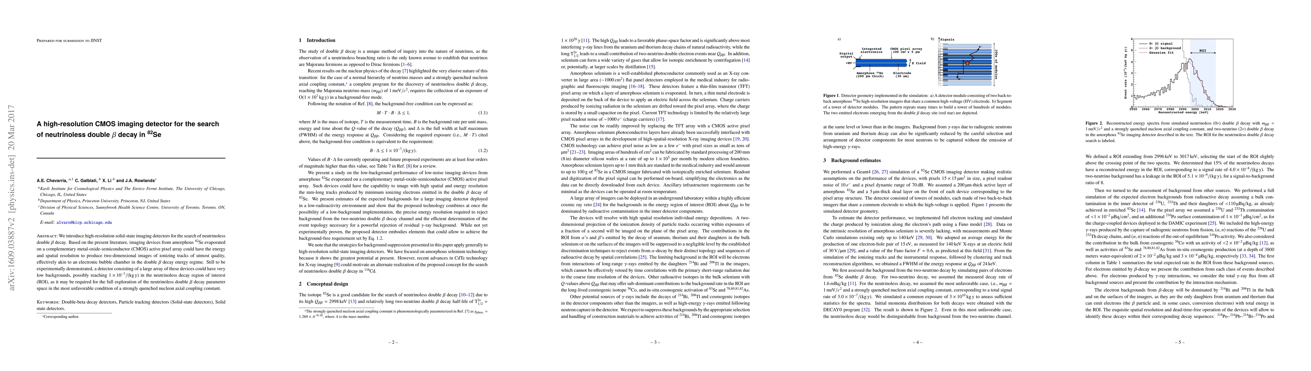 We introduce high-resolution solid-state imaging detectors for the search of neutrinoless double $\beta$ decay. Based on the present literature, imaging devices from amorphous $^{82}$Se evaporated on a complementary metal-oxide-semiconductor (CMOS) active pixel array could have the energy and spatial resolution to produce two-dimensional images of ionizing tracks of utmost quality, effectively akin to an electronic bubble chamber in the double $\beta$ decay energy regime. Still to be experimentally demonstrated, a detector consisting of a large array of these devices could have very low backgrounds, possibly reaching $10^{-7}$/(kg y) in the neutrinoless decay region of interest (ROI), as it may be required for the full exploration of the neutrinoless double $\beta$ decay parameter space in the most unfavorable condition of a strongly quenched nucleon axial coupling constant.
