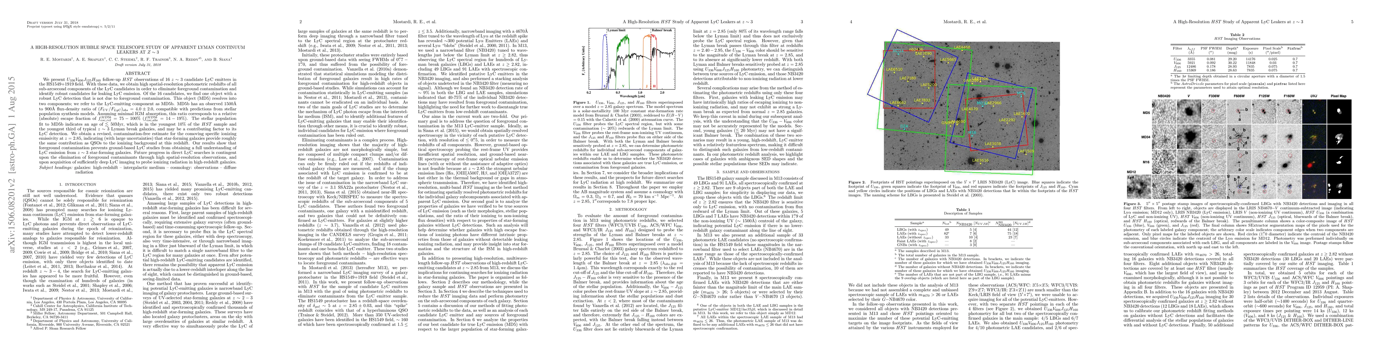 A Hubble Space Telescope study identified one object with robust LyC emission at $z him 3$, indicating a young stellar population contributing to its detection, while highlighting the challenge of foreground contamination in ground-based studies.