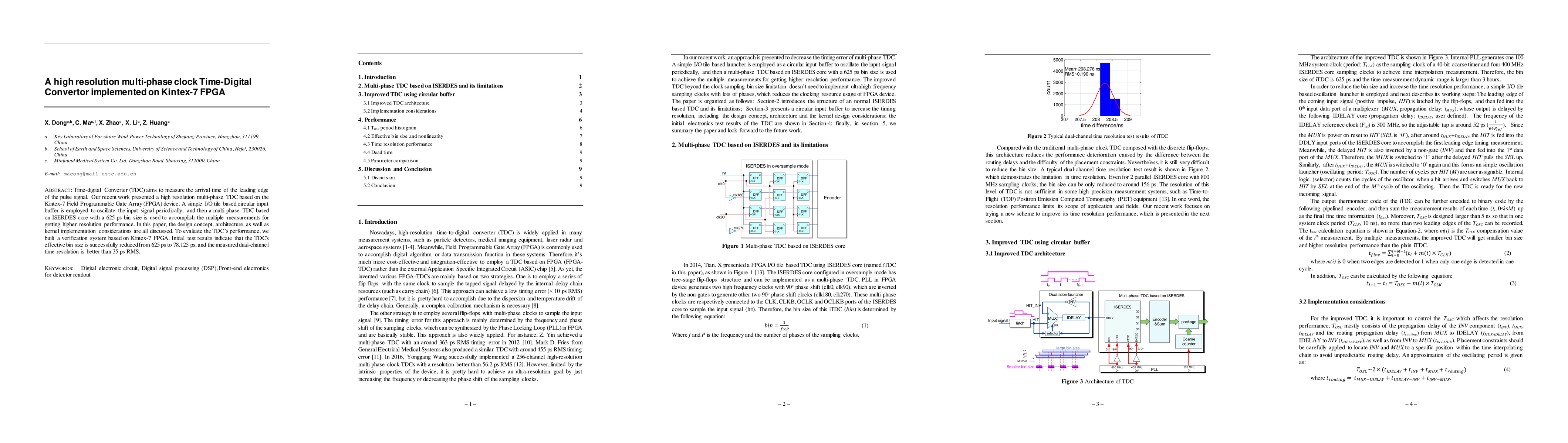 Time-digital Converter (TDC) aims to measure the arrival time of the leading edge of the pulse signal. Our recent work presented a high resolution multi-phase TDC based on the Kintex-7 Field Programmable Gate Array (FPGA) device. A simple I/O tile based circular input buffer is employed to oscillate the input signal periodically, and then a multi-phase TDC based on ISERDES core with a 625 ps bin size is used to accomplish the multiple measurements for getting higher resolution performance. In this paper, the design concept, architecture, as well as kernel implementation considerations are all discussed. To evaluate the TDC's performance, we built a verification system based on Kintex-7 FPGA. Initial test results indicate that the TDC's effective bin size is successfully reduced from 625 ps to 78.125 ps, and the measured dual-channel time resolution is better than 35 ps RMS.