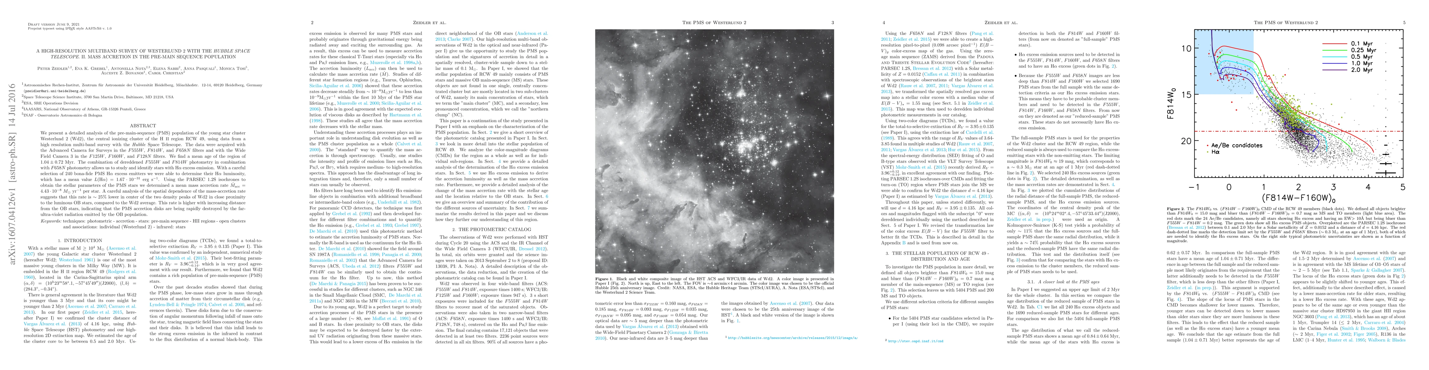 We present a detailed analysis of the pre-main-sequence (PMS) population of the young star cluster Westerlund~2 (Wd2), the central ionizing cluster of the HII region RCW 49, using data from a high resolution multi-band survey with the Hubble Space Telescope. The data were acquired with the Advanced Camera for Surveys in the F555W, F814W, and F658N filters and with the Wide Field Camera 3 in the F125W, F160W, and F128N filters. We find a mean age of the region of 1.04+-0.72 Myr. The combination of dereddened F555W and F814W photometry in combination with F658N photometry allows us to study and identify stars with H_alpha excess emission. With a careful selection of 240 bona-fide PMS H_alpha excess emitters we were able to determine their H_alpha luminosity, which has a mean value L(H_alpha)=1.67 x 10^{-31} erg s^{-1}. Using the PARSEC 1.2S isochrones to obtain the stellar parameters of the PMS stars we determined a mean mass accretion rate \dot M_acc=4.43 x 10^{-8} M_sun yr^{-1} per star. A careful analysis of the spatial dependence of the mass-accretion rate suggests that this rate is ~25% lower in center of the two density peaks of Wd2 in close proximity to the luminous OB stars, compared to the Wd2 average. This rate is higher with increasing distance from the OB stars, indicating that the PMS accretion disks are being rapidly destroyed by the far-ultra-violet radiation emitted by the OB population.