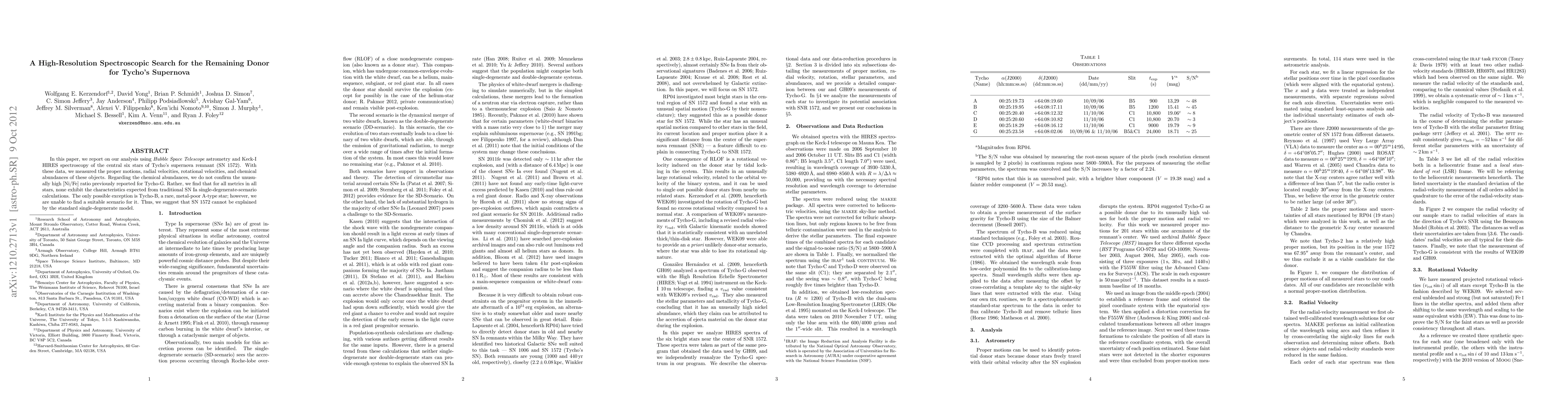 In this paper, we report on our analysis using Hubble Space Telescope astrometry and Keck-I HIRES spectroscopy of the central six stars of Tycho's supernova remnant (SN 1572). With these data, we measured the proper motions, radial velocities, rotational velocities, and chemical abundances of these objects. Regarding the chemical abundances, we do not confirm the unusu- ally high [Ni/Fe] ratio previously reported for Tycho-G. Rather, we find that for all metrics in all stars, none exhibit the characteristics expected from traditional SN Ia single-degenerate-scenario calculations. The only possible exception is Tycho-B, a rare, metal-poor A-type star; however, we are unable to find a suitable scenario for it. Thus, we suggest that SN 1572 cannot be explained by the standard single-degenerate model.