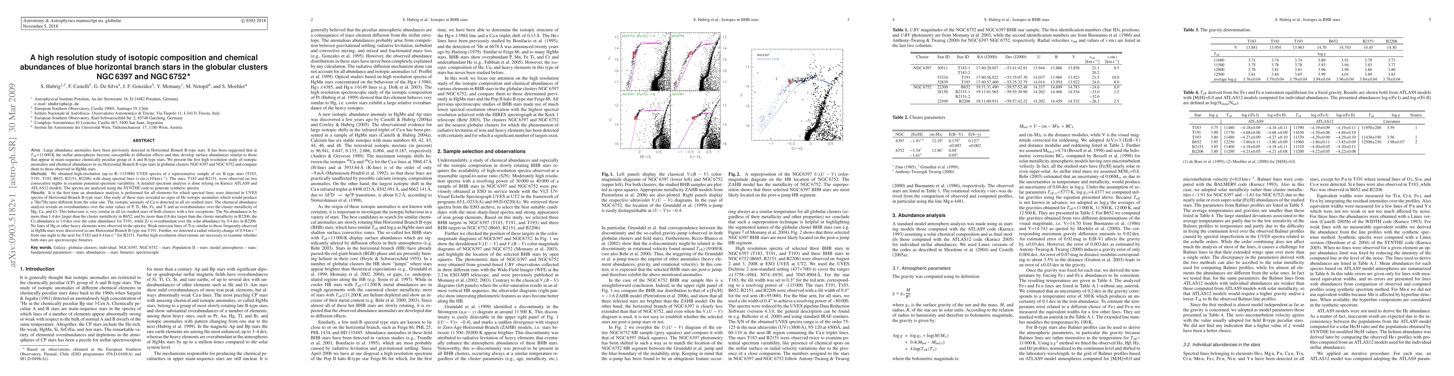 This study presents high-resolution isotopic and chemical abundance analyses of six Horizontal Branch B-type stars in globular clusters NGC6397 and NGC6752, revealing no He isotopic anomalies but detecting Ca isotopic anomalies. The stars show overabundances of P, Ti, Mn, Fe, Y, Mg, Ca, and Cr, with notable variations in Na, Co, and Zr abundances among individual stars.