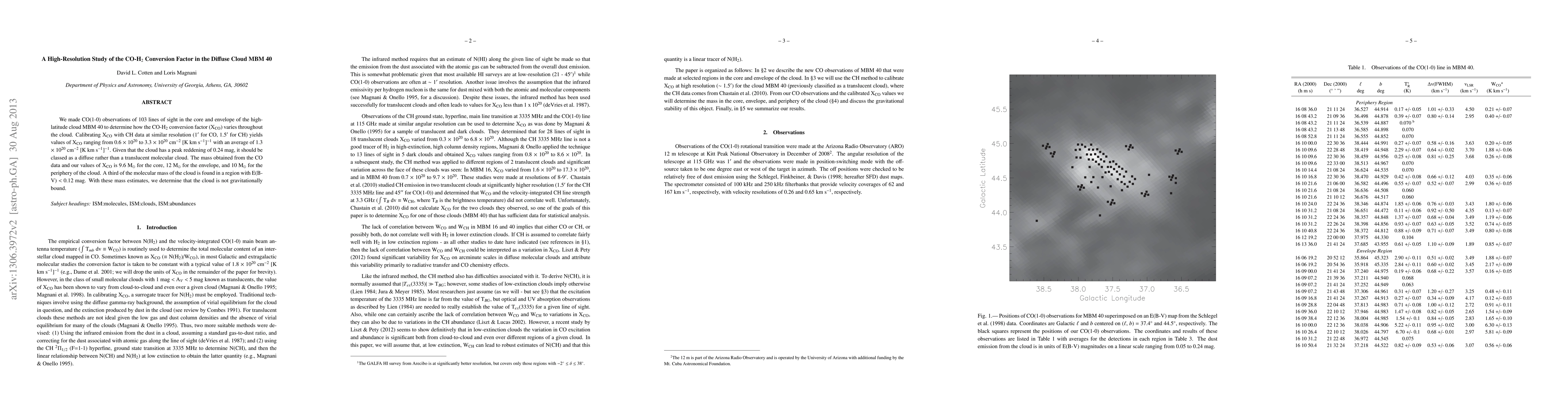 This study investigates the CO-H2 conversion factor (X_CO) in the diffuse cloud MBM 40, finding values ranging from 0.6 x 10^20 to 3.3 x 10^20 cm^-2 [K km s^-1]^-1, with an average of 1.3 x 10^20 cm^-2 [K km s^-1]^-1. The cloud's mass is estimated at 10 M(solar), indicating it is not gravitationally bound.
