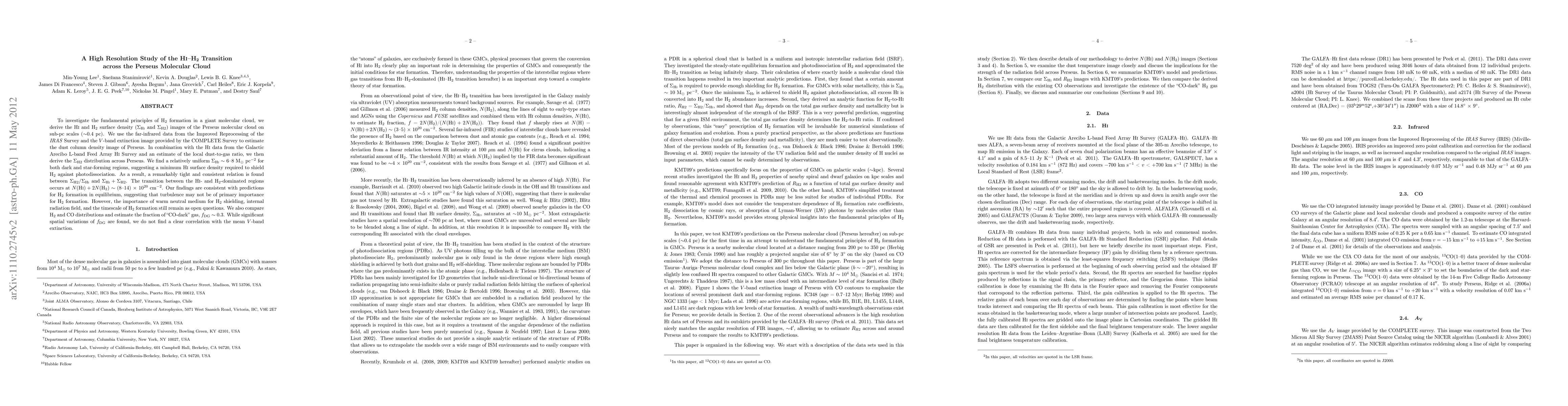 This study investigates the HI-H2 transition in the Perseus molecular cloud, revealing a uniform HI surface density and a tight relation between H2 and HI densities. The transition occurs at a critical column density, suggesting turbulence may not be crucial for H2 formation, though the role of a warm neutral medium and internal radiation fields remain unclear.