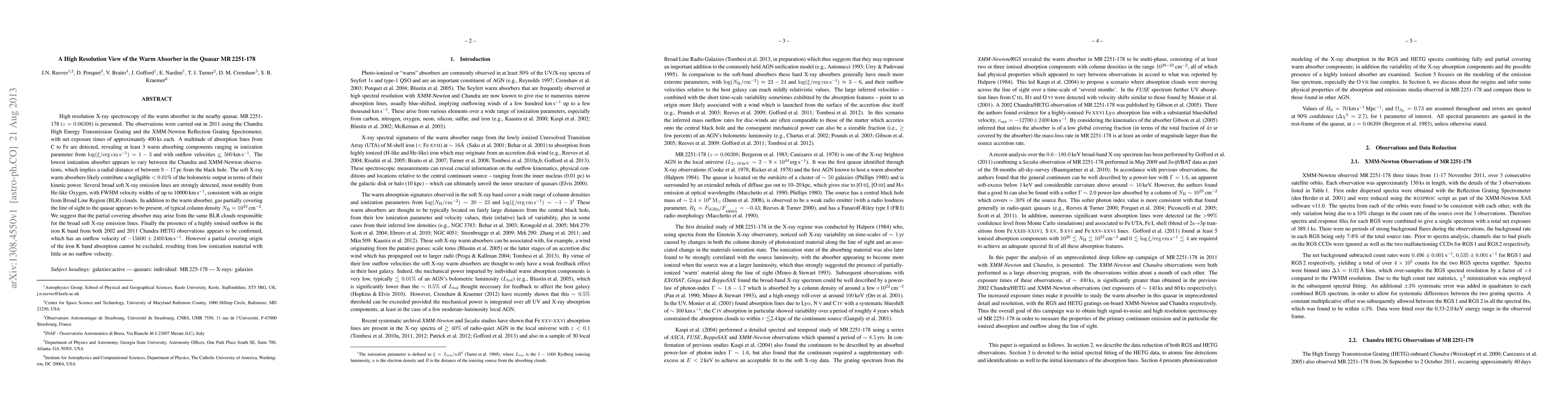 This study used high-resolution X-ray spectroscopy to analyze the warm absorber in quasar MR2251-178, detecting multiple absorption lines and broad soft X-ray emission lines from Broad Line Region clouds, with implications for our understanding of quasar outflows and gas dynamics.