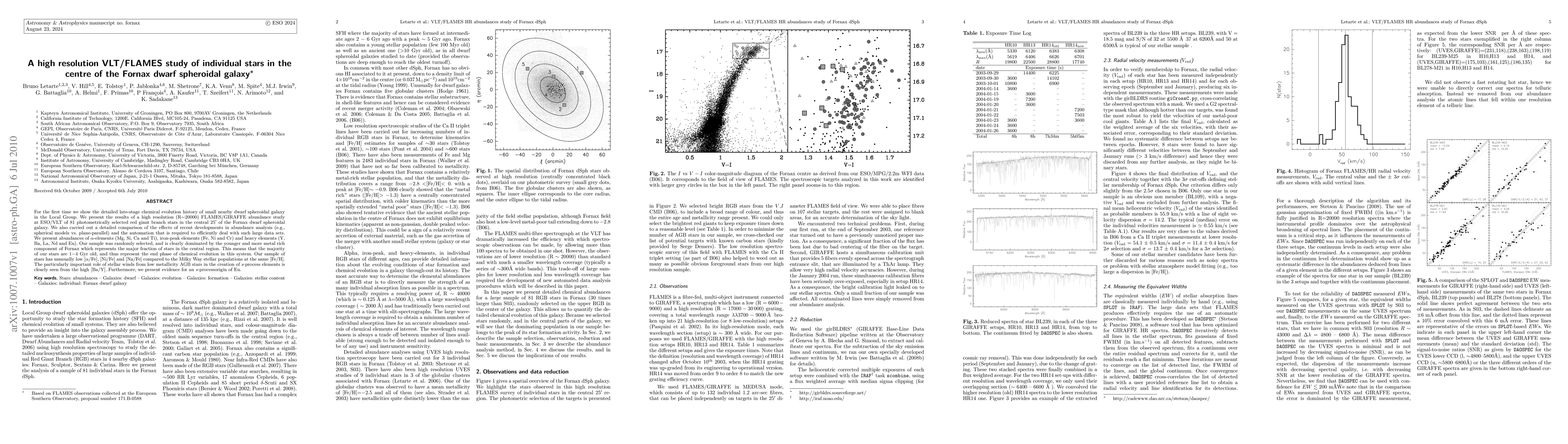 This study provides a high-resolution chemical analysis of 81 red giant stars in the Fornax dwarf spheroidal galaxy, revealing its late-stage chemical evolution. The findings indicate a younger, metal-rich stellar population with low $\alpha$/Fe ratios, suggesting a significant role of low metallicity AGB stars in producing s-process elements like Ba and Eu.
