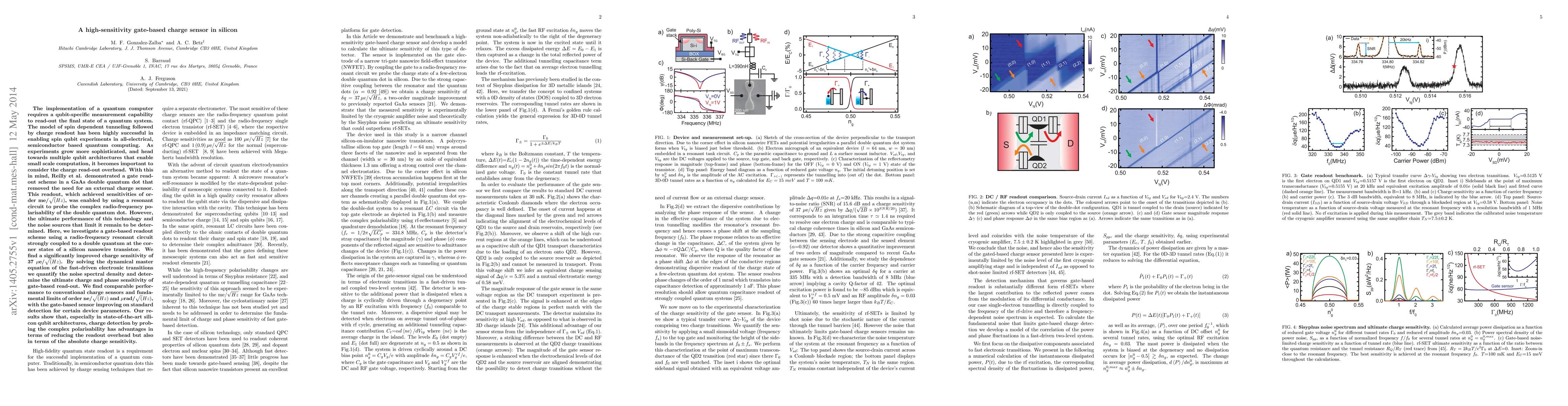 This paper presents a gate-based charge sensor in silicon nanowire transistors that achieves a high sensitivity of 37 μe/√Hz, significantly improving on conventional charge sensors. The study demonstrates comparable performance to traditional sensors while identifying fundamental noise limits, suggesting advantages in reducing readout overhead and enhancing charge sensitivity in advanced silicon qubit architectures.