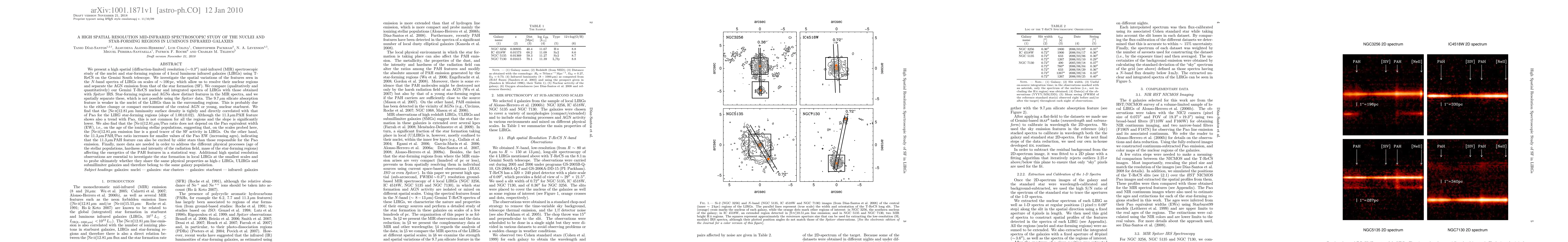This study employs high spatial resolution mid-infrared spectroscopy to examine the nuclei and star-forming regions of four luminous infrared galaxies, revealing that AGN emission can be distinguished from star formation. The 9.7um silicate feature is weaker in the nuclei, likely due to a compact or clumpy environment, while [NeII] luminosity correlates directly with Pa-alpha across star-forming regions.