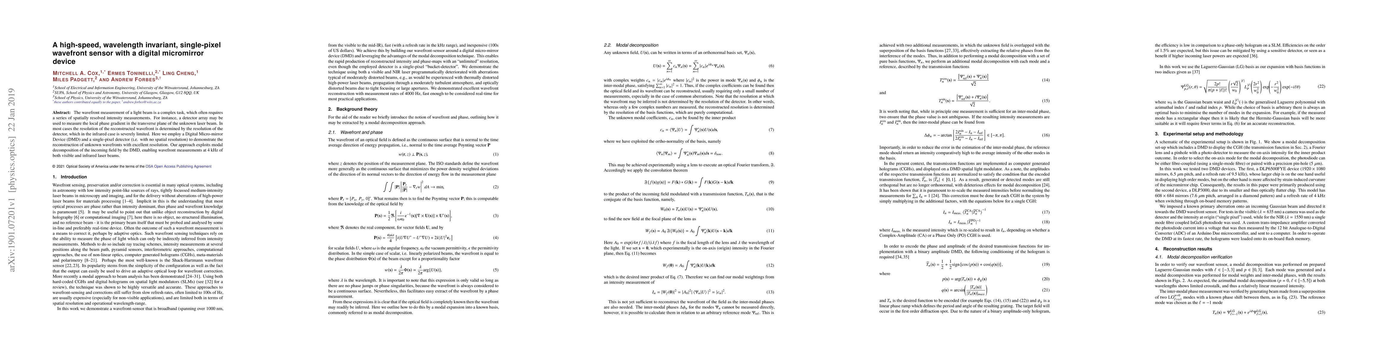 Researchers developed a high-speed wavefront sensor using a digital micromirror device and single-pixel detector to accurately measure unknown laser beams with excellent resolution.