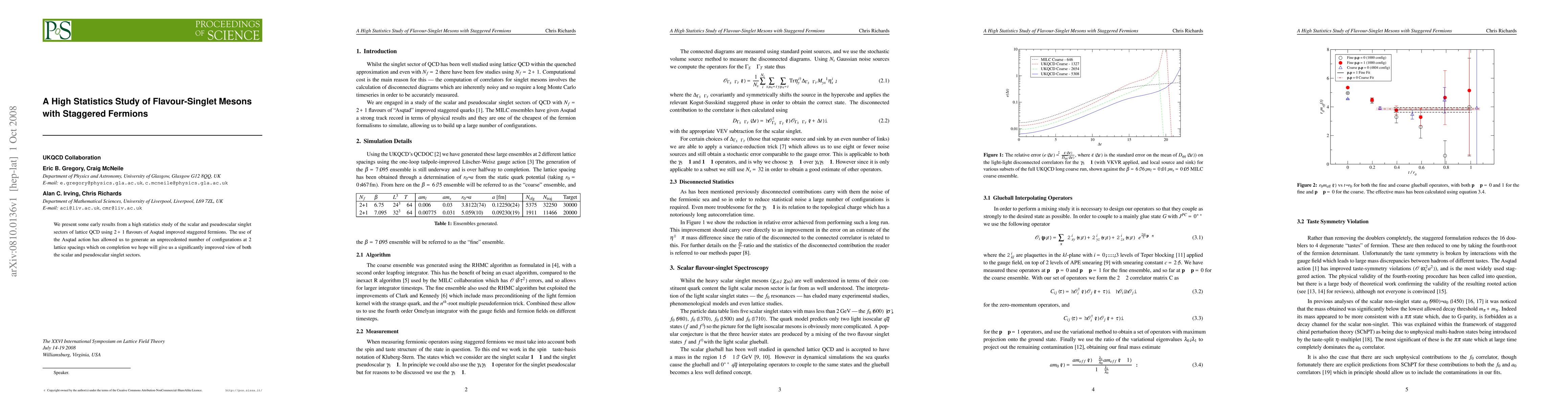 Researchers conducted a high statistics study of flavor-singlet mesons using 2+1 flavors of Asqtad improved staggered fermions, generating unprecedented configurations to improve understanding of scalar and pseudoscalar sectors.
