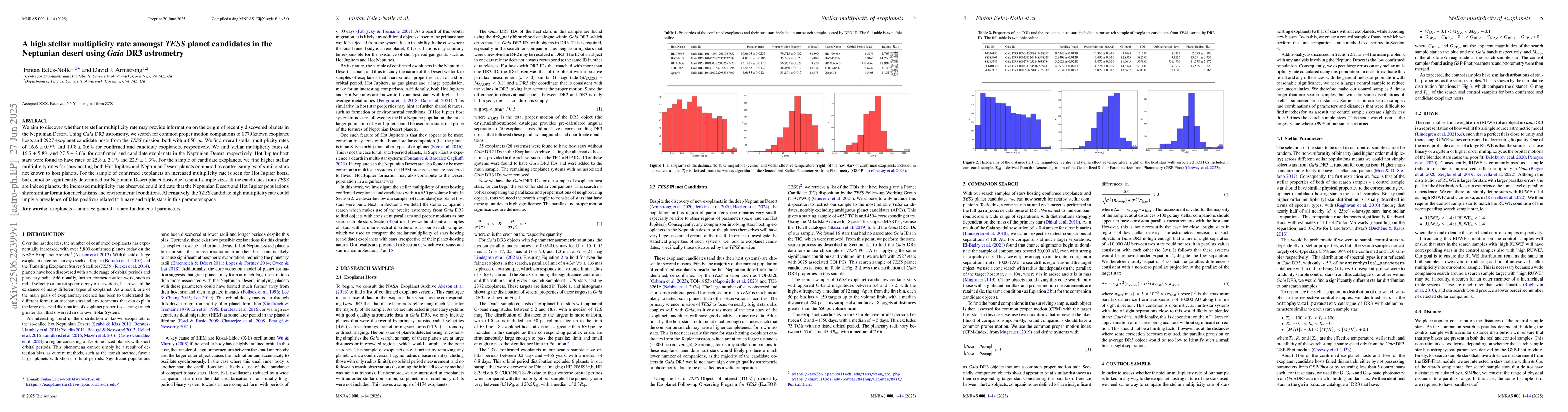 This study uses Gaia DR3 astrometry to find high stellar multiplicity rates, 16.7% and 27.5%, among TESS exoplanet candidates and hosts in the Neptunian Desert, suggesting shared formation mechanisms or potential false positives due to binary/triple stars.