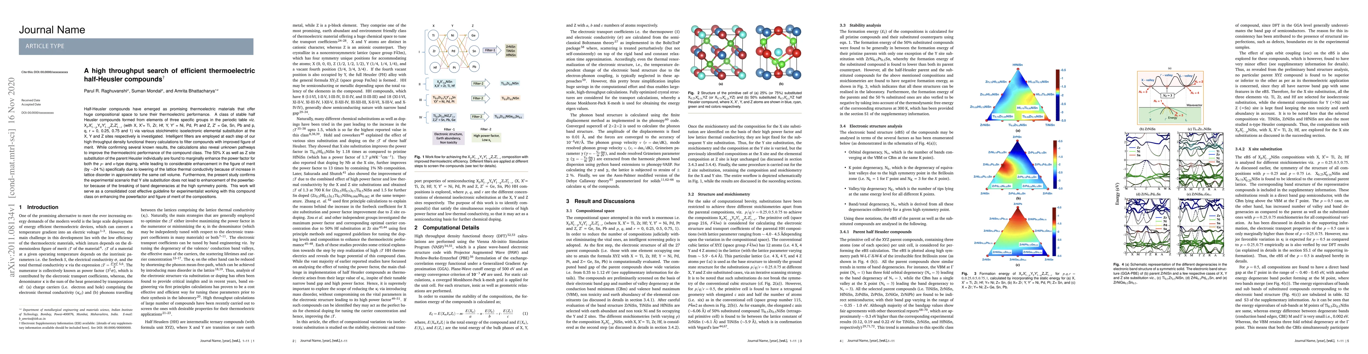 This study employs high throughput density functional theory to explore efficient thermoelectric half-Heusler compounds, revealing that X and Z site substitutions enhance the figure of merit by lowering lattice thermal conductivity, while Y site substitution does not improve the power factor due to broken band degeneracies.